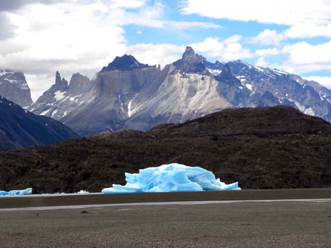 During our all day tour we stopped at lakes, a rushing waterfall, and enjoyed a long walk to see the icebergs of the Grey Glacier, which was around a bend and too far away for us to see. We wished for time to take the boat there. The icebergs were huge and the deep blue color, which indicates thousands of years of compressed snows. We had a delicious grilled buffet in the Parrilla Pehoe Restaurant within Torres de Paine National Parque, where we saw many birds including colorful large scavengers. Torres de Paine was exquisite and the long day of site seeing was over too soon.