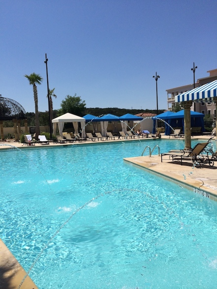 By 10AM we had gathered at the Culinary Institute of America’s third campus (Hyde Park & Napa) for our 4-hour mini-boot camp in Latin cuisine. I rarely cook but under the guidance of Chef Sergio Remolina (he moved here from the Hyde Park campus) and his two assistants our group prepared a glorious luncheon. We had so much fun that we cancelled our wine seminar attendance. Many of us returned to the hotel for some rest time. I went out to the pool and made use of the hot tub. During the Thursday afternoon time at the pool I was one of 5 people there. Saturday afternoon I had a tough time finding a lounge. I learned that the people who lived in the complex had use of the pool.