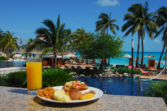 I stayed at the Fiesta Americana Grand Coral Hotel, with its own stretch of paradise, and enough amenities you may not want to venture out. With two towers of rooms, with most providing an expansive view of the ocean with stunning sunrises, there are views of several swimming pools and water features, dotted with dining venues. A breakfast indoors or out is an invigorating start to your day at the Vina del Mar. The extensive breakfast buffet includes everything you could desire: pastries, fruits, cereals, juices, hot entrées and made to order eggs. If you are eager to celebrate the day, champagne is available. Lunch can be taken at the Contoy Restaurant, Coral Cafe or pool bars, with restaurants; Isla Contoy, La Joya, or Coral Café, for your evening dining pleasure. The rooms are large and most with a small private balcony lets you enjoy the ocean breeze and stunning vistas, letting you know you have arrived at one of the world’s most desirable locales. If you can, I suggest booking on the executive level where one flight up is a semi private lounge with complementary beverages, snacks and more ocean vistas.