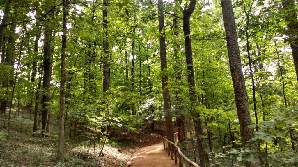 I could have jumped on a shuttle bus at this point of my adventure but I wanted to finish what I started and continued down the path. The path along the cemetery was the narrowest but still passable. The final .35 miles of the trail was tranquil and beautiful. Strolling down and along the sandy dirt path it felt like I had gone back in time again. The canopy of the trees was a natural umbrella from the modern world and it protected us from the beating sun making the journey a little more pleasant. The chorus of bugs and birds accompanied the cadence of our steps and encouraged us forward. It was a perfect way to end our stay at Monticello.