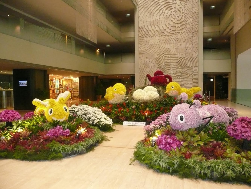 At the entrance of the flower show, giant floral birds, bees, rabbits greet visitors. They even have a big pot (of Thai tea?) waiting for guests as well. And the eggs seem to have been freshly laid.
