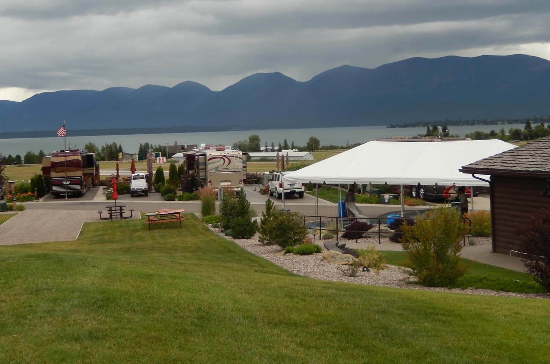 Polson/Flathead Lake Montana KOA and Motor Coach Resort is quite something! This place is where we discovered a new concept for the camping company. The regular campsites were perfectly kept and an excellent place for RV’s, tents, fifth-wheels, and campers of all types. The cabins are typical KOA cozy, or you may rent the Deluxe Cabin with a fireplace, a kitchenette, air conditioning, and a barbeque grill and Jacuzzi hot tub on your private deck! You look out at the beautiful Mission Mountains and the big Flathead Lake, a great place to fish. You are quite near Kalispell and Whitefish and about a two hour drive to Glacier National Park.