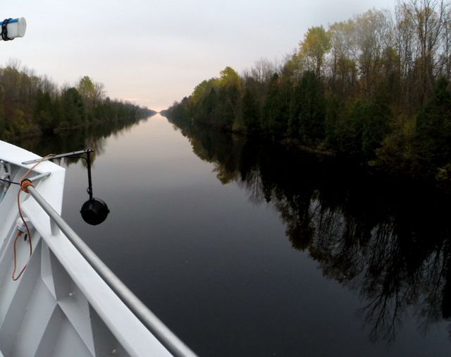 As a single traveler I relished having one of the few cabins with an outside door to the walk around deck. While the sliding door often would not stay shut, when it was open during day cruising it was a joy to relax on the opposite bed with views out the door of the shoreline accented with a variety of homes and landscapes dotted with colorful autumn trees. My cabin was designed for two, and I might suggest for my tastes two persons might be one too many in any of the cabins, as elbow room in the cabins is at a premium. But such is the design of small ships. I did hear some first time passengers comment on the noise in the cabins of the individually controlled air system , the engine noise, and the challenge in taking a brief compact shower, but that has to be chalked up to part of the small ship adventure. Again, the Blount cruise is about destinations not accommodations.