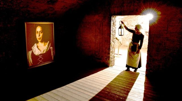 Lighting conveys the supernatural nature of the attraction as much as does the narrative. Only “practicals” –- original methods of lighting the dwellings –- are used, re-creating the actual lighting conditions of the 17th-18th centuries. Candle light illuminates one room, while the glow of firelight casts its spell in another. A single low-watt light bulb brings others into hazy focus.