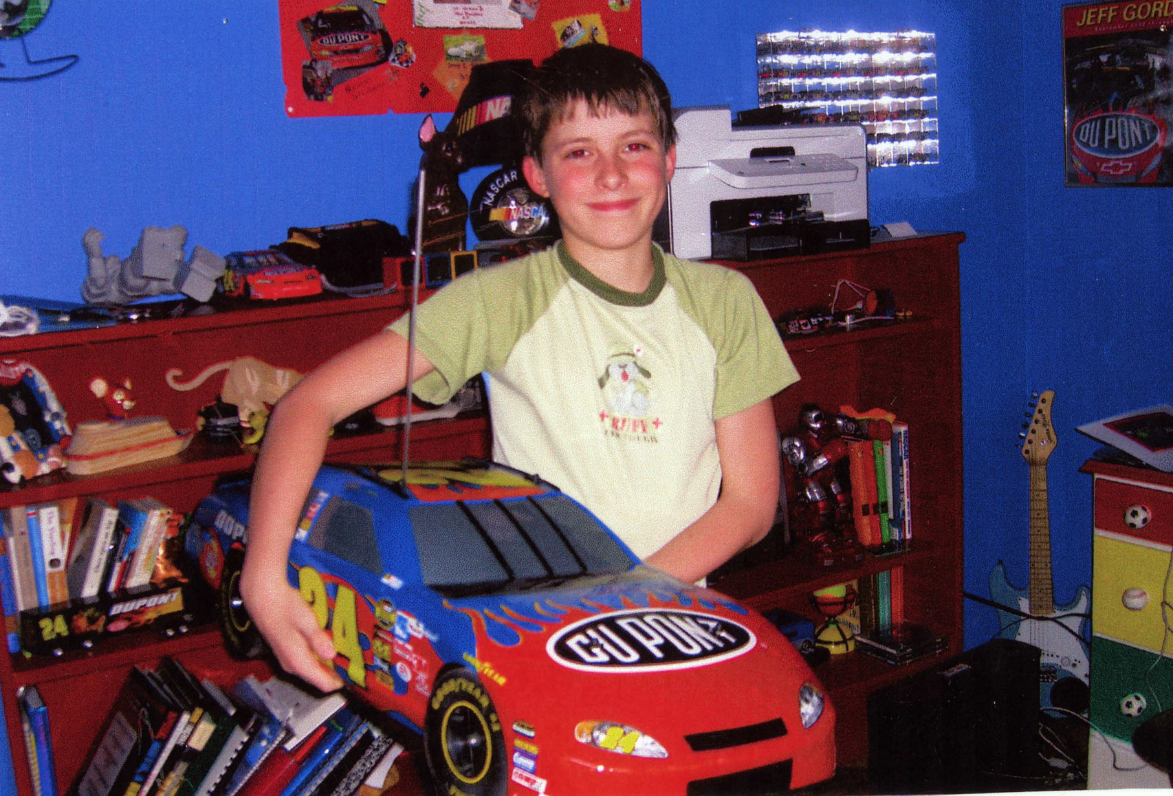 Our grandson has been an avid NASCAR fan since he was three years old. When Bill was tired of playing on the floor he put him in his lap saying, “Let’s watch the cars go around. Which one will we cheer for: the M&M car or the Dupont car with the flames?” Nicolas quickly chose the bright fiery flames with Jeff Gordon as the driver, and that day he won the race! Nicolas was HOOKED! As a pre-schooler he begged to watch every race on TV, and when he got his first email address he even used a clever derivative of Gordon’s name for his own email address, so with every email he sent or received he could promote his favorite star!