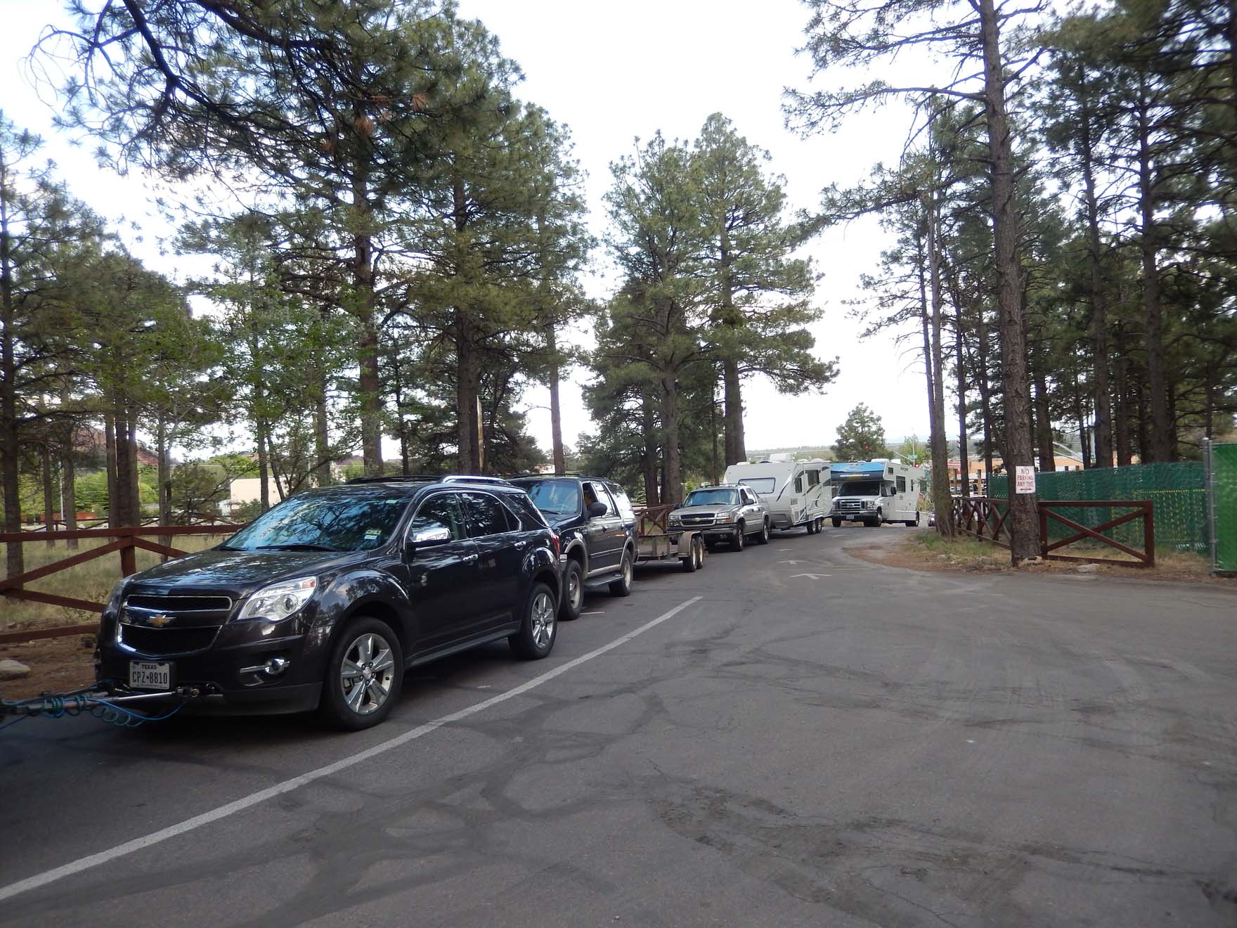 We found Flagstaff KOA a comfortable, friendly, well-located site. It takes about 90 minutes to drive to the South side of the Grand Canyon, which is why most people stay here; others come just to find a cool, full shade respite from blistering summer heat and to kick back and have a wholesome, fun, camping experience. The smell of campfires and meat cooking while families gather around their own picnic tables at most sites imprints your memory with happy reveries. Plan to arrive early instead of peak check-in time in late afternoon because the driveway entrance is sometimes bumper to bumper and extends into the edge of highway traffic.