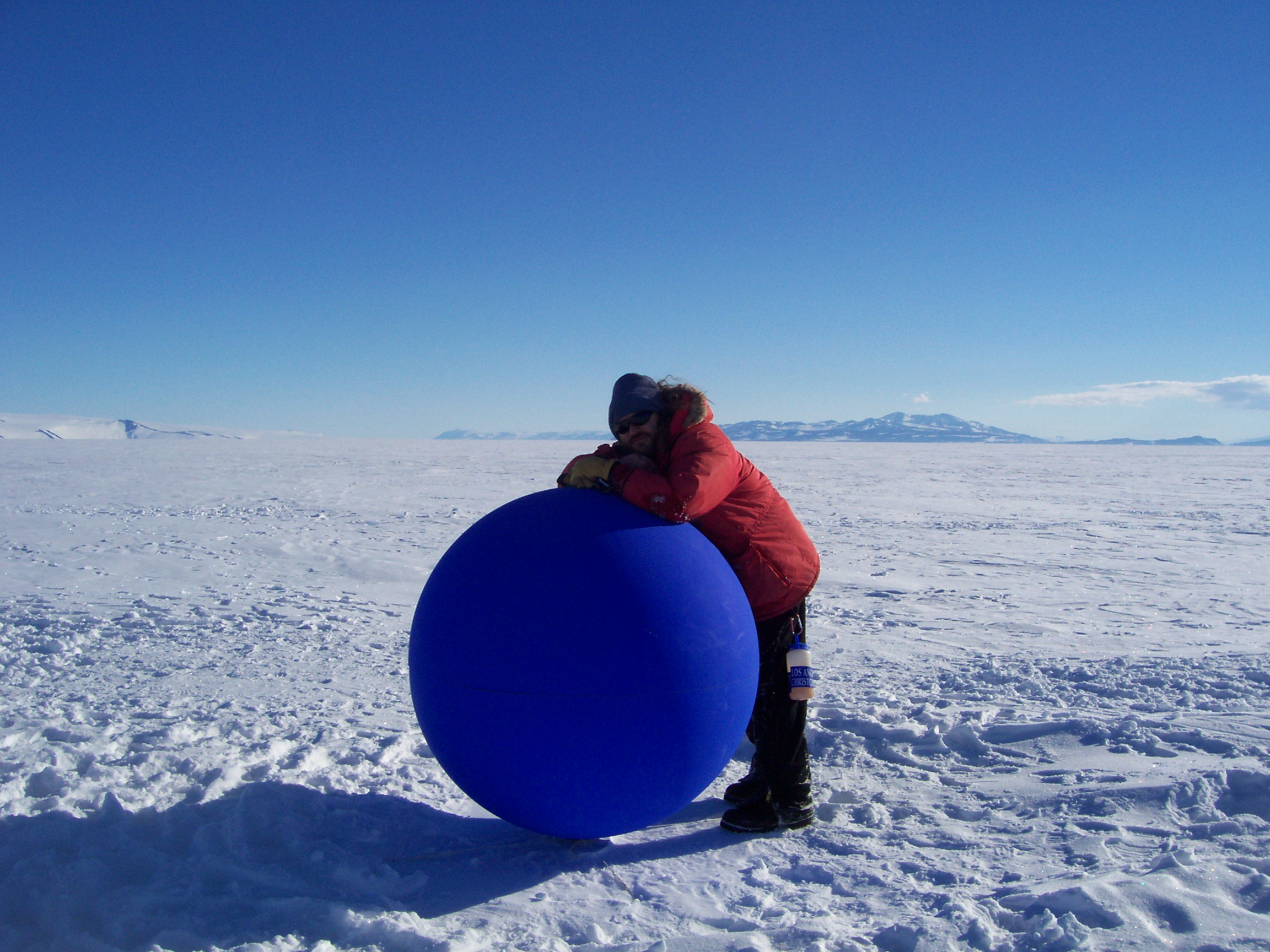 It was all set up when I got there. They had a large hole in the ice with a ladder sticking out. There was a metal platform about 10 feet long, leading to the ladder. There were two Kiwi helpers waiting to assist the plungers.