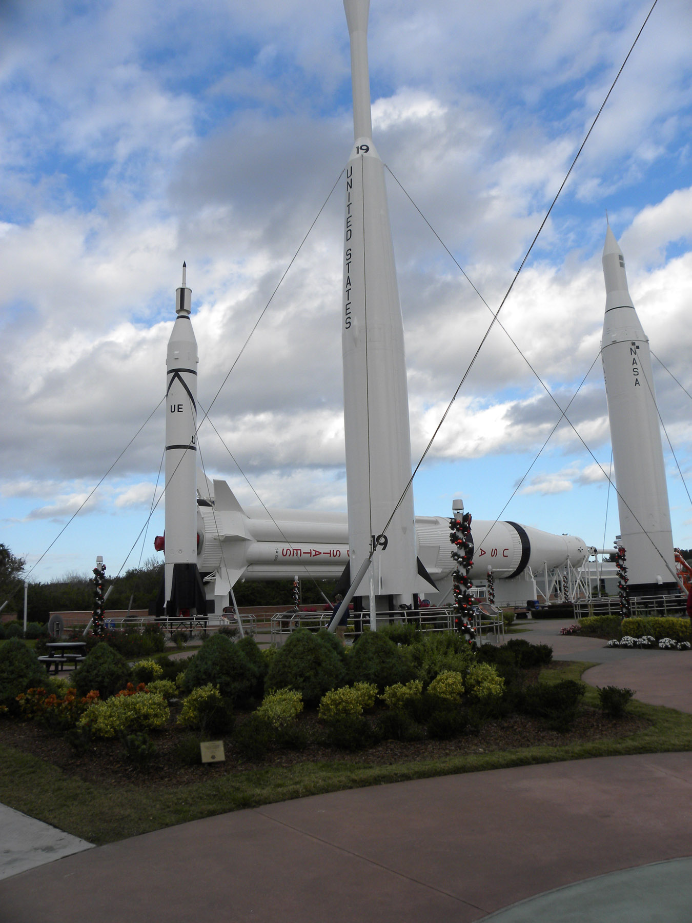 At the Rocket Garden we learned about all the various rockets since the inception of our USA Space Age in the 1960’s and many of these giants ended their use in this beautiful garden for us to see and enjoy. Next we took the comfortable, narrated bus ride a few miles beyond the Center to see the actual place where the rockets are built, and we were lucky enough to get a glimpse at the Saturn V because one of the huge doors of the building was open. We saw the authentic launch pads used for sending up previous space ships. And to our surprise we learned that unmanned rockets are being launched frequently for testing, for sending up satellites, and trips to the International Space Station and Hubble Telescope. We missed seeing the most recent launch by only a few weeks.