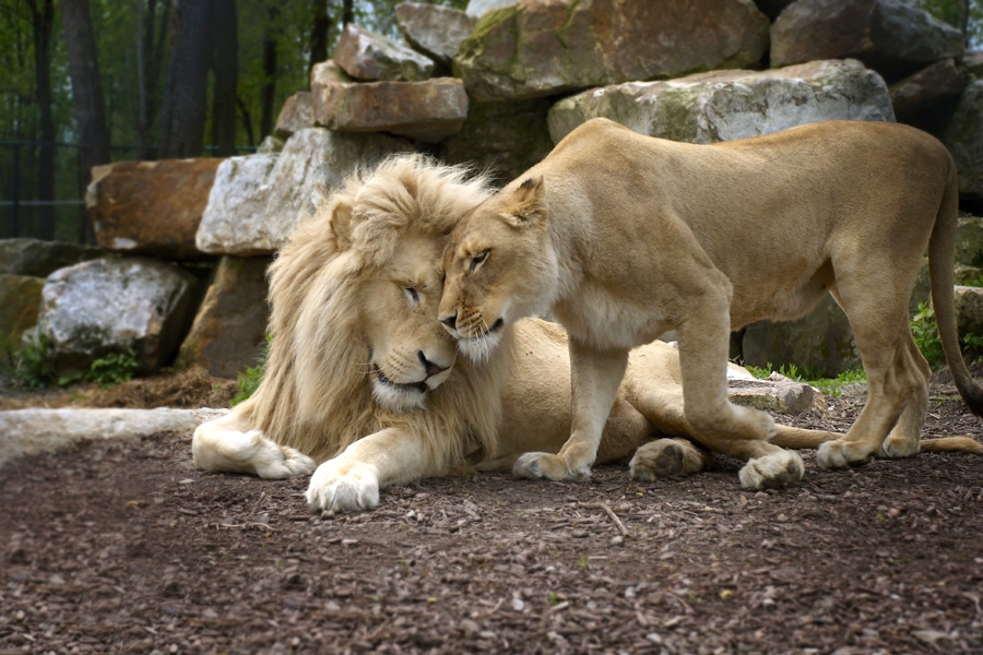 Oh, and by the way, there are real live animals cavorting around the grounds. Lions and Tigers and Bears, Oh My -– yup, literally. Also a herd of zebras, some llamas, an hyena and a couple of wolves and cougars.