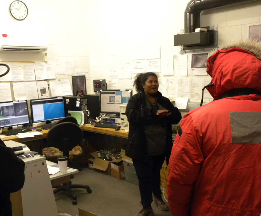 We were learning so very much and went into the control room to see the large computer system collecting the photos. The wind was louder and louder outside and then our guide got the dreaded call, Evacuate the mountain immediately because winds had reached 80 kph and people could be blown off the mountain. This rule is strict. We were all disappointed but Carol explained that one night she had been stranded with a large group of tourists on the mountain all night because the wind reached over 200 kilometers per hour. The buildings are built to withstand 300 kilometers per hour. Everyone was offered rain-checks or refunds.