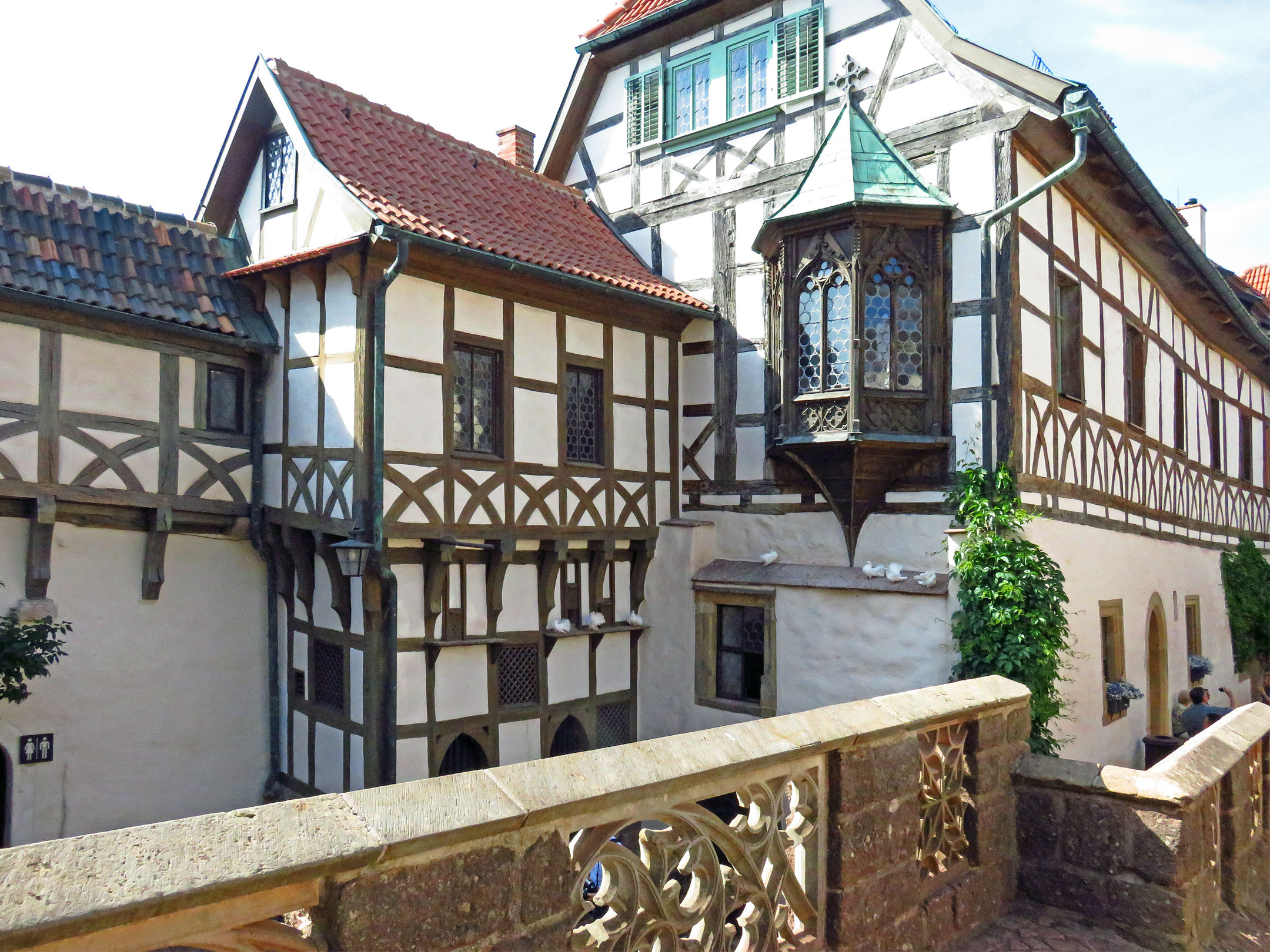 A subject to the Edict of Worms (Imperial ban), Luther was aided by his early defender, Frederick III, who sheltered him at the Wartburg Castle in the wooded mountains overlooking Eisenach. Built in 1067, and richly decorated with murals and mosaics, Wartburg Castle was home to St. Elisabeth of Hungary in the early 1200s, and an inspiration for Ludwig II’s Neuschwanstein Castle (the prototype of the Cinderella Castle in Disney theme parks). Wartburg Castle was added to the UNESCO World Heritage list in 1999.