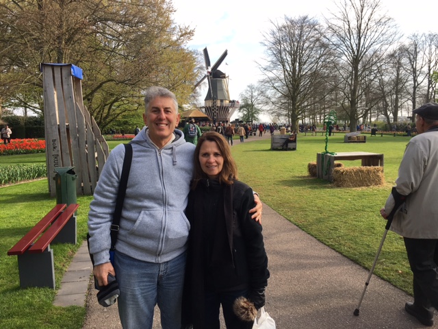 We were fortunate to be in Amsterdam at the peak of the tulip festival. We spent ½ day at the Keukenhof tulip and flower gardens and bulb fields, which are only open two months per year (late March to late May), at the peak of the blooming season. The world’s largest tulip fields feature the Netherlands most famous flowers in a dazzling kaleidoscope of colors. We meandered for several hours along well-manicured paths and by ponds, struck by the vivid colors and hues with about 600 kinds of tulips in almost every color imaginable! As we climbed up the Groningen windmill on the grounds, we saw fields of literally millions of tulips and other flowers in stunning colors stretching out over 80 acres of land.