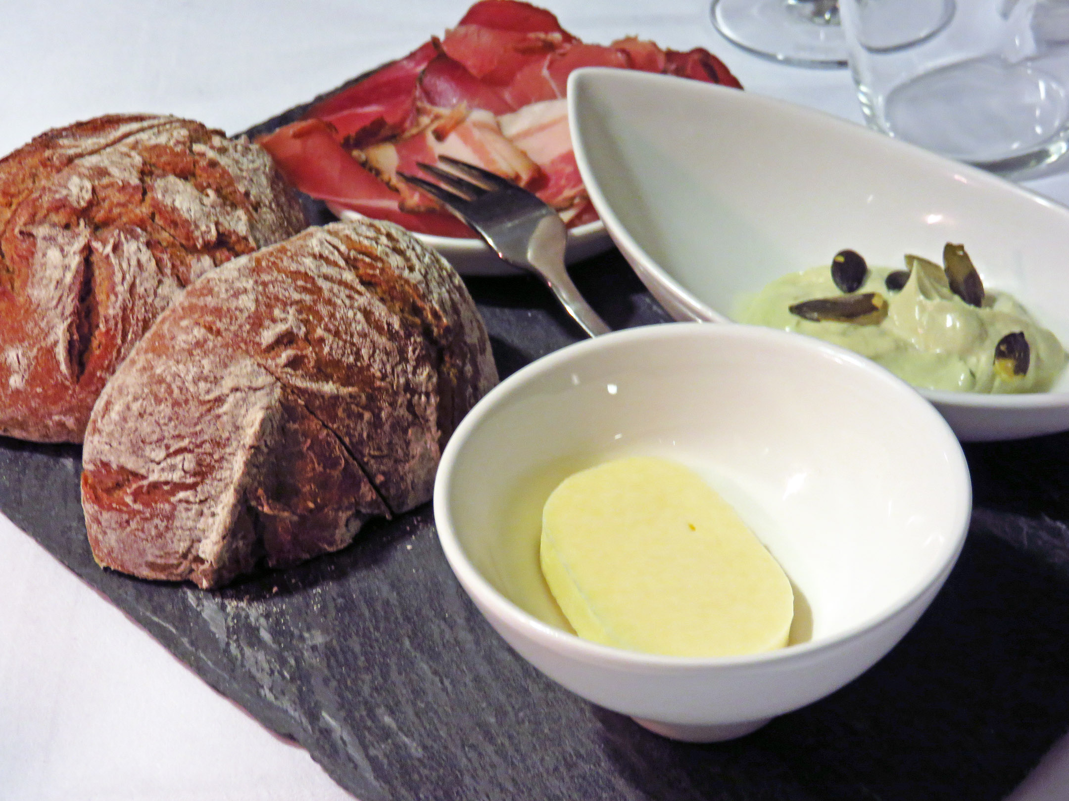 Our first stop in the area was at Wirtshaus Döllerer in a small village of Golling. Dirndl-clad waitresses promptly put on the table bottles of Stiegl beer from the oldest brewery in Austria, in operation since 1492, and slate boards with freshly baked bread, butter, volcano ham, and a Kernöl dip studded with dark-green pumpkin seeds.