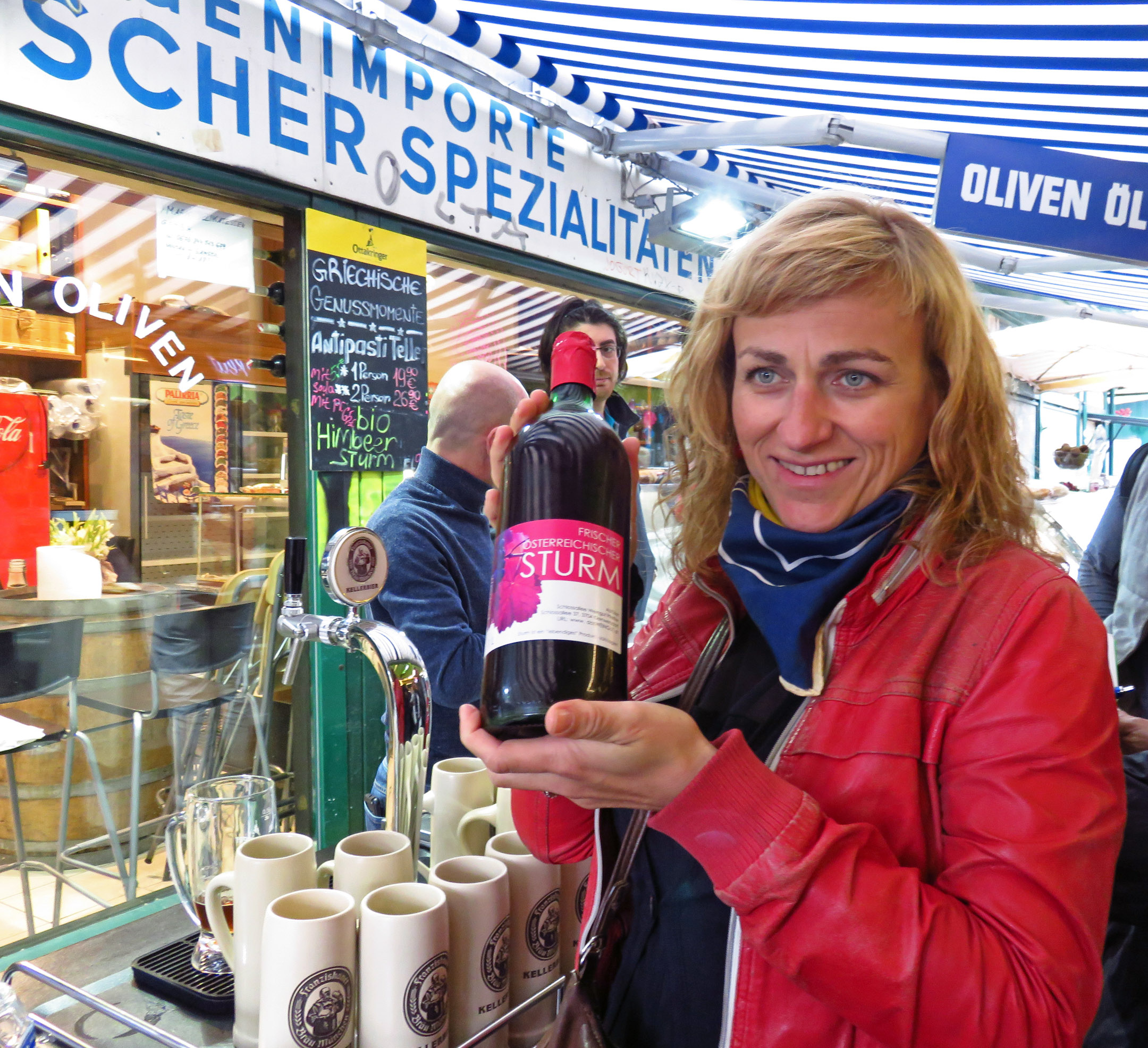 On our walk through the Naschmarkt, the most important produce market in Vienna, we noshed on a variety of Austrian foodstuffs, from a golden-fried lake trout at Umar restaurant and cave-aged cheeses at Käsehütte to “blue poppy” Zotter chocolate and cloudy semi-fermented Sturm wine, only available for a couple weeks in season.