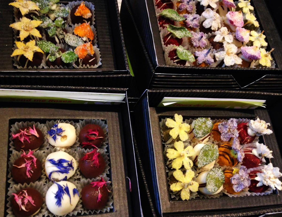 Edible flowers made their appearance in a unique confectioner’s shop, Blühendes Konfekt, created by Michael Diewald. The “Blooming Confections” enthusiast picks most of his ingredients in his own garden and in the forests that surround the city. He dries petals, leaves, and whole inflorescences, and encases them in glittering sugar, creating one-of-a-kind fairy-tale stuffing and toppings for his pralines, marmalades and pastilles.