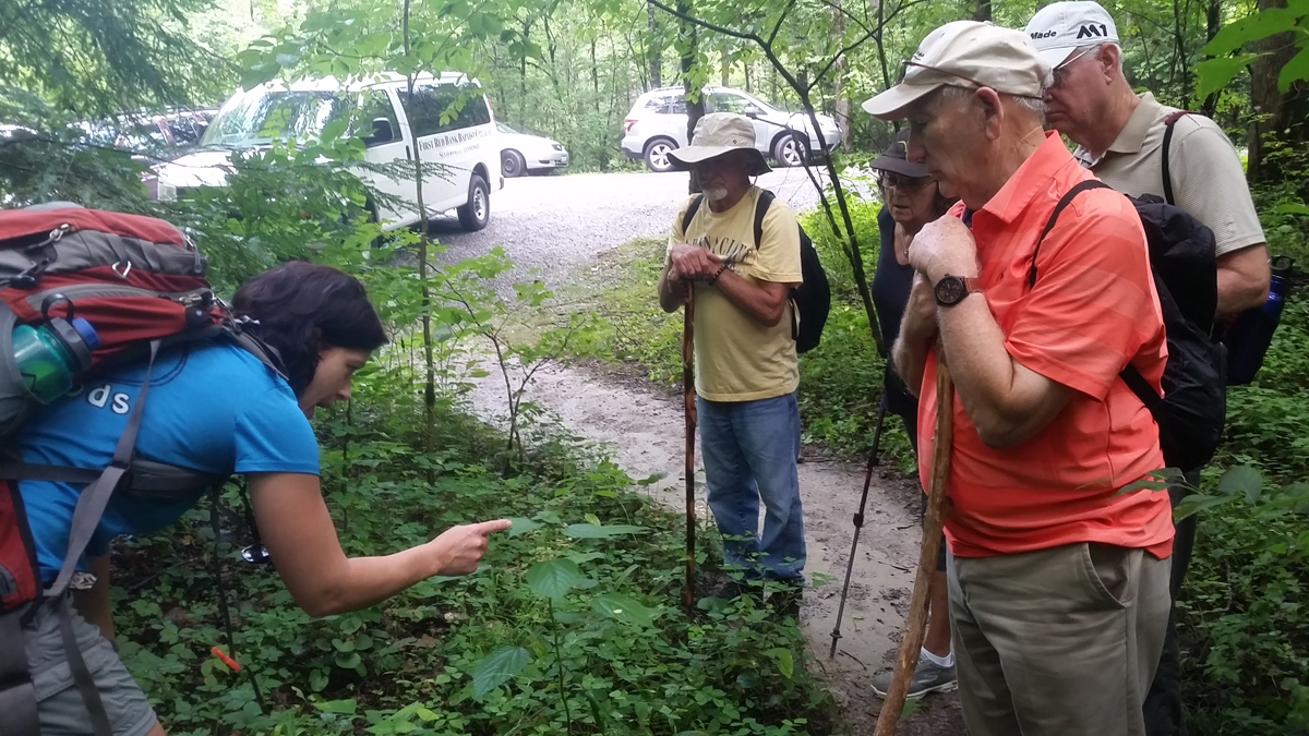 Jamie Matzko was our guide this summer. A native of this area of Tennessee, she has loved out-of-doors all her life and is skilled in so many things that made our hike filled with fun and very educational. We learned so much about the trees, vines and bushes, birds, and other wild life around us. She stopped at many plants and told how they could be used medicinally or for food, and she pointed out some which are harmful or poisonous.