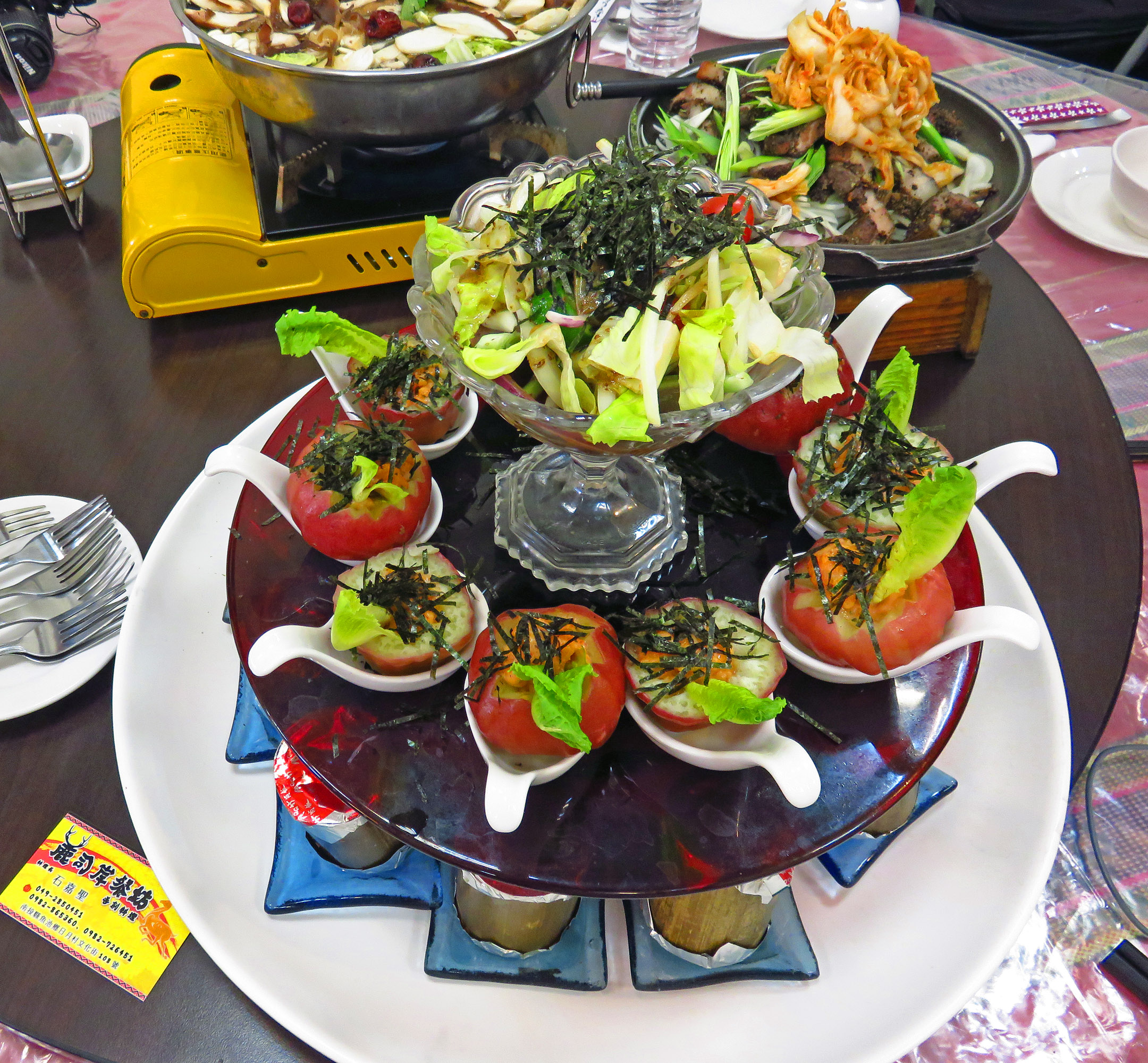 At lunch at Lusihan – an aboriginal restaurant – we’ve not only tried the most exotic foods, like “wax apples” stuffed with dried shrimp and seaweed, and sticky rice baked and served in bamboo cups, but also learned about the tribal history of Taiwan – of 16 different tribes composing the island nation.
