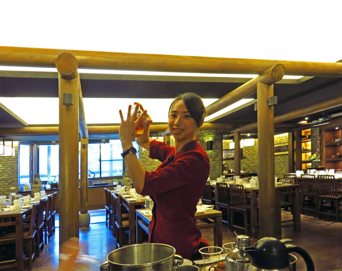 Here, in the spacious dining room, separated by a glass wall from a pristine kitchen, where all workers were clad in white sanitary suits and masks, our group was greeted by my Taiwanese namesake, Emma, a deputy supervisor of catering department.