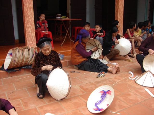 Besides learning about how products are made in the traditional manner I learned more about the culture. During a visit to Hung Lo Temple a local group performed a traditional folk song, “Hat Xoan.” “Hat Xoan” is seeking recognition as a world cultural heritage to be preserved. Xoan singing is believed to have been developed during the reign of the Hung Kings (2890 to 250 BC). It has been passed on within certain families for generations. I was impressed with the seriousness of the young boy leading the group. He was the grandson of the person who is currently the head of the group and some day it will be his job to preserve Hat Xoan and pass it on.