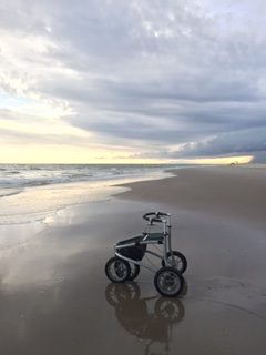 In 2017, Groves began to become more active and adventurous, with the support of family and friends. She walked several 5K charity events with the rollator, which was somewhat helpful but also a bit of a hindrance.