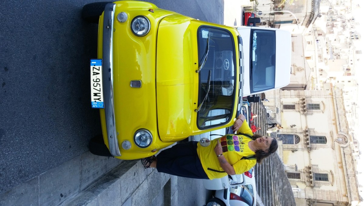 Admittedly, exploring the old Medieval city of Modica was fascinating, but it couldn’t compare with the unexpected joy rides in vintage iconic Fiat 500 sports cars over hilly, twisty, curvy, windy, narrow, cobblestone streets. First made popular in 1957 as a readily affordable automobile, these refurbished convertibles – smaller than a Smart car – still barely fit on alleyways that were unfathomably two-way. Warning: “Do not put your hand outside the car or you’ll end up losing it.” Sort of like a Disney ride threatening to go off the tracks. The fact that we were driving through a former 12th century Norman city was just a bonus.