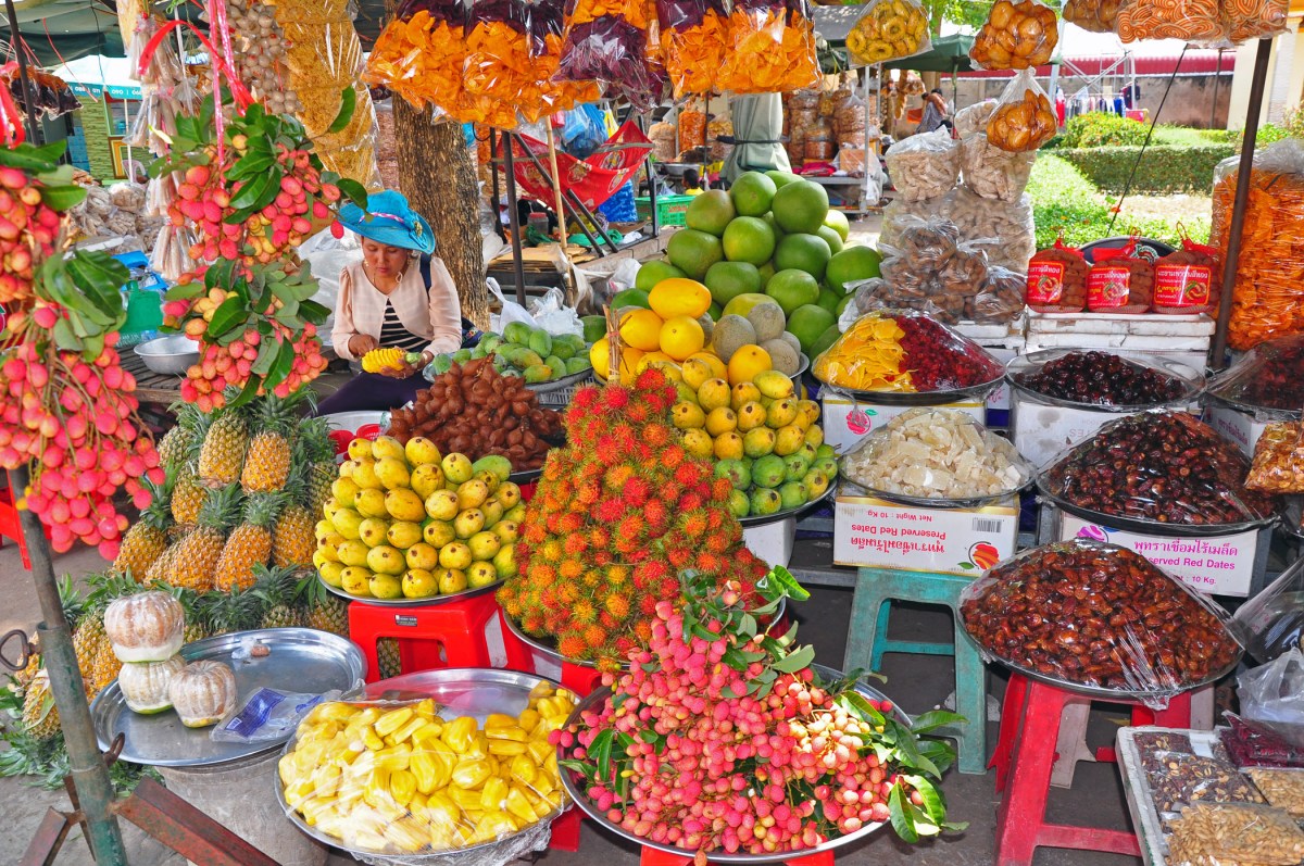 And last, but not least of the Cambodian part of the cruise, a visit to the Phnom Penh Central Market, overflowing with shiny things, lavish tropical fruit and flowers, and lots and lots of… elephant pants.