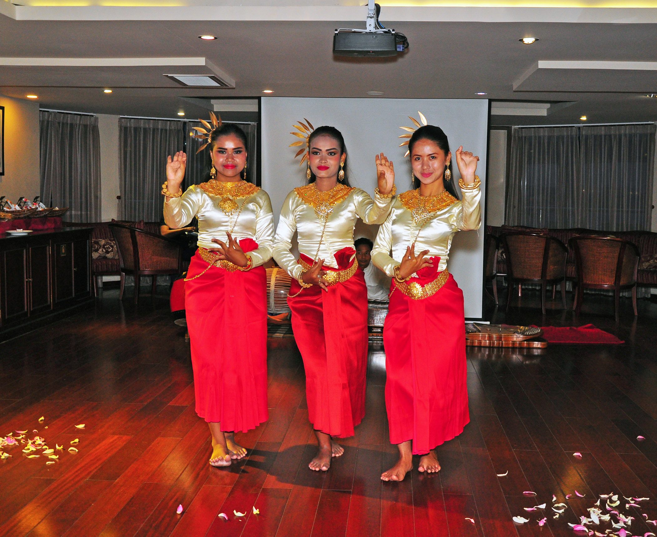 That night, we had the most entertaining evening show of all. Every night, Saigon Lounge turned into a performance venue. We’ve seen Khmer and Vietnamese dancers and musicians, took part in karaoke nights, dancing rounds, and music sessions with the onboard pianist Vy. But the crew’s talent show contest, “AmaDara Has Got Talent” was an undisputable winner!