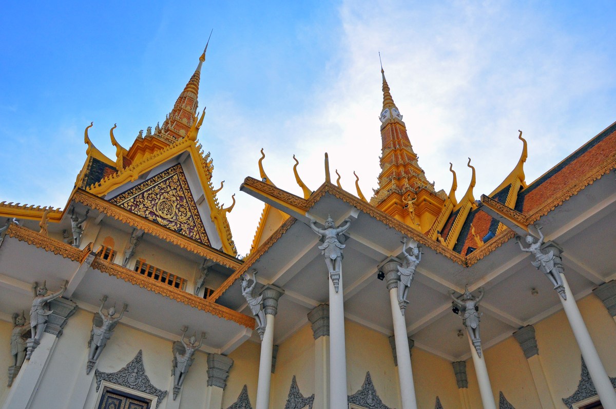 A bicycle-driven tuk-tuk taking us through the bustling streets of Phnom Penh to the wide tree-lined boulevards and giant lotus-shaped Independence Monument erected in 1958 to signify the end of the French rule. A tour of the opulent Royal Palace built in 1866 by the great-grandfather of the current Cambodian king on a site chosen by royal astrologists. Silver-floored Prasat Prak temple with a mind-bogglingly shiny solid gold standing Buddha statue with diamond eyes and more than 2000 diamonds in adornments.