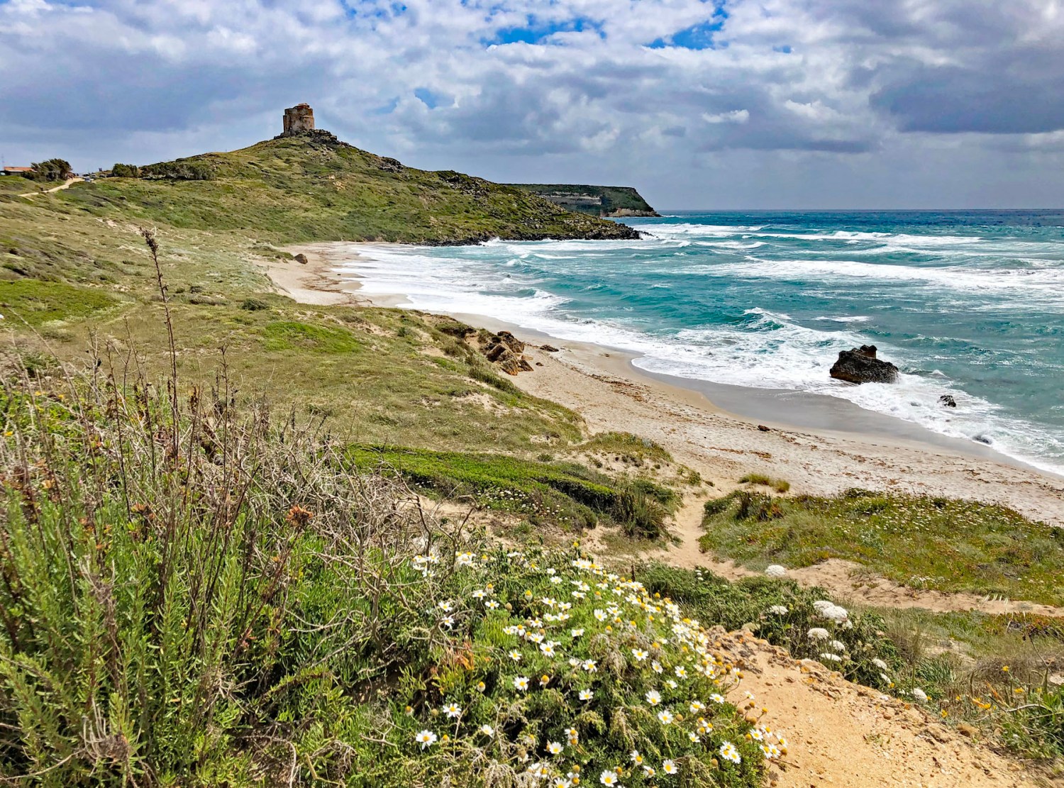 Refreshingly sea-washed, sun-drenched and wind-swept, the island boasts an endless sky, a wide open horizon, lacy sea foam clinging to the dramatic cliffs, and flowers, flowers everywhere – red poppies, white and yellow daisies, blue and purple bells, and entire fields of cloudlike water-dropworts swaying gently in the breeze. Sardinian environment is ancient, unchanged in ages, and soul-healing.