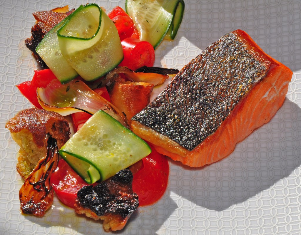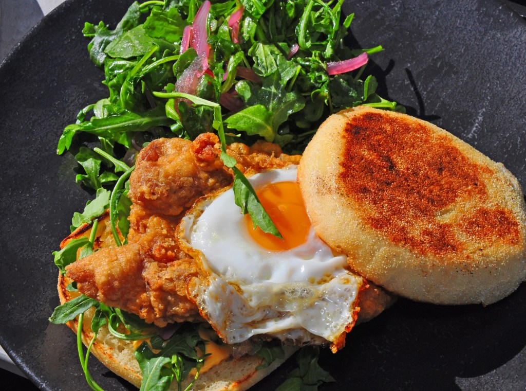 Pan-Seared Salmon (Heirloom Tomato, Sourdough Panzanella, Cucumber, Roasted Young Onion) tastes as bright and fresh as it looks, and Fried Chicken Sandwich (Sourdough English Muffin, Farm Egg, Pickled Onions, Arugula) brings ultimate comfort to the diner’s soul.