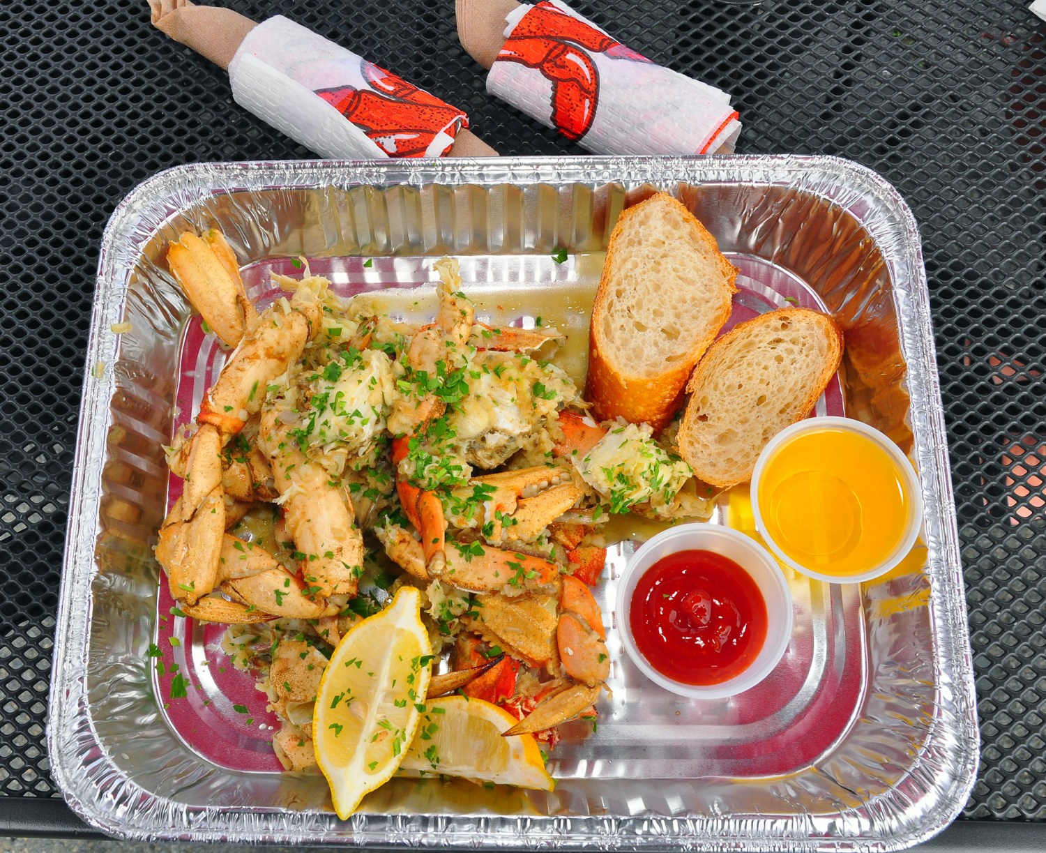 Seated under bright red umbrellas, far apart and separated from the street by potted cypress plants, guests indulge in fresh crab, sourdough crust pizzas, pork barbeque ribs in housemade sauce, salmon and chicken sandwiches and plates, heirloom tomato panzanella salad, and classic hamburgers, complemented by specialty cocktails, wine, beer, craft cocktails and the eatery’s legendary clam chowder in sourdough bread.
