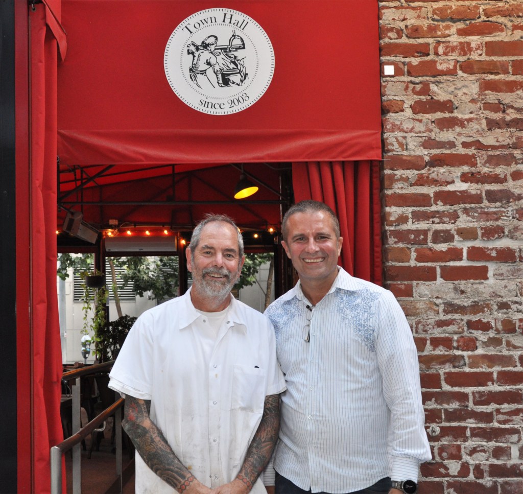 For the Town Hall’s September 2020 reopening, the co-founding Executive Chefs Mitchell and Steven Rosenthal and their partner co-owner Bjorn Kock created a special menu, inspired by Chef Mitchell’s celebrity mentor, Chef Paul Prudhomme and his 40-year old legendary New Orleans restaurant K-Paul’s, recently closed for good. The remodeled Town Hall patio and a part of the adjacent plaza with recently planted trees and flower beds provided 850 sq. ft. of outdoor dining in a surprisingly quiet cozy area of downtown with tables for couples and small groups under the outdoor lights and heaters.