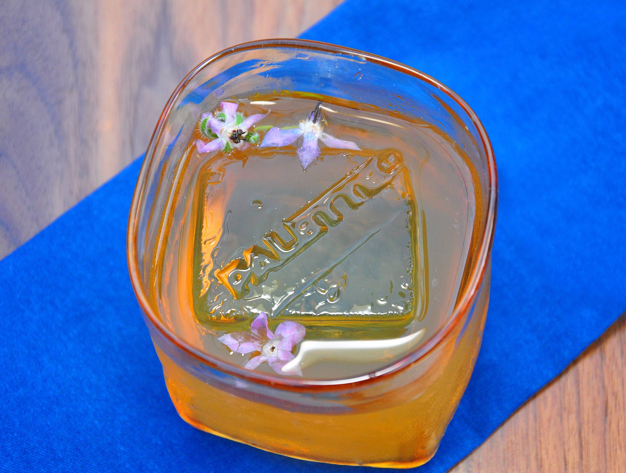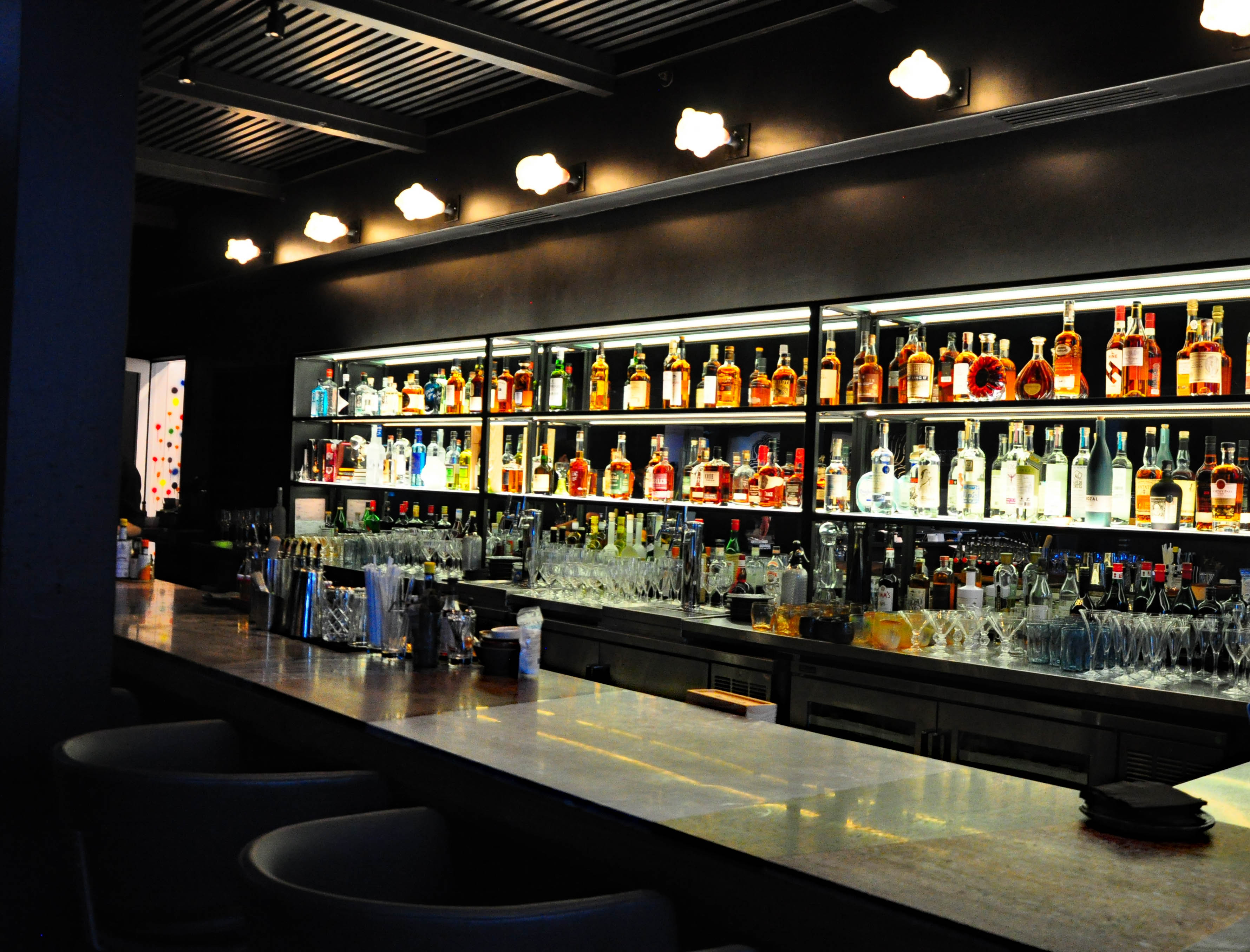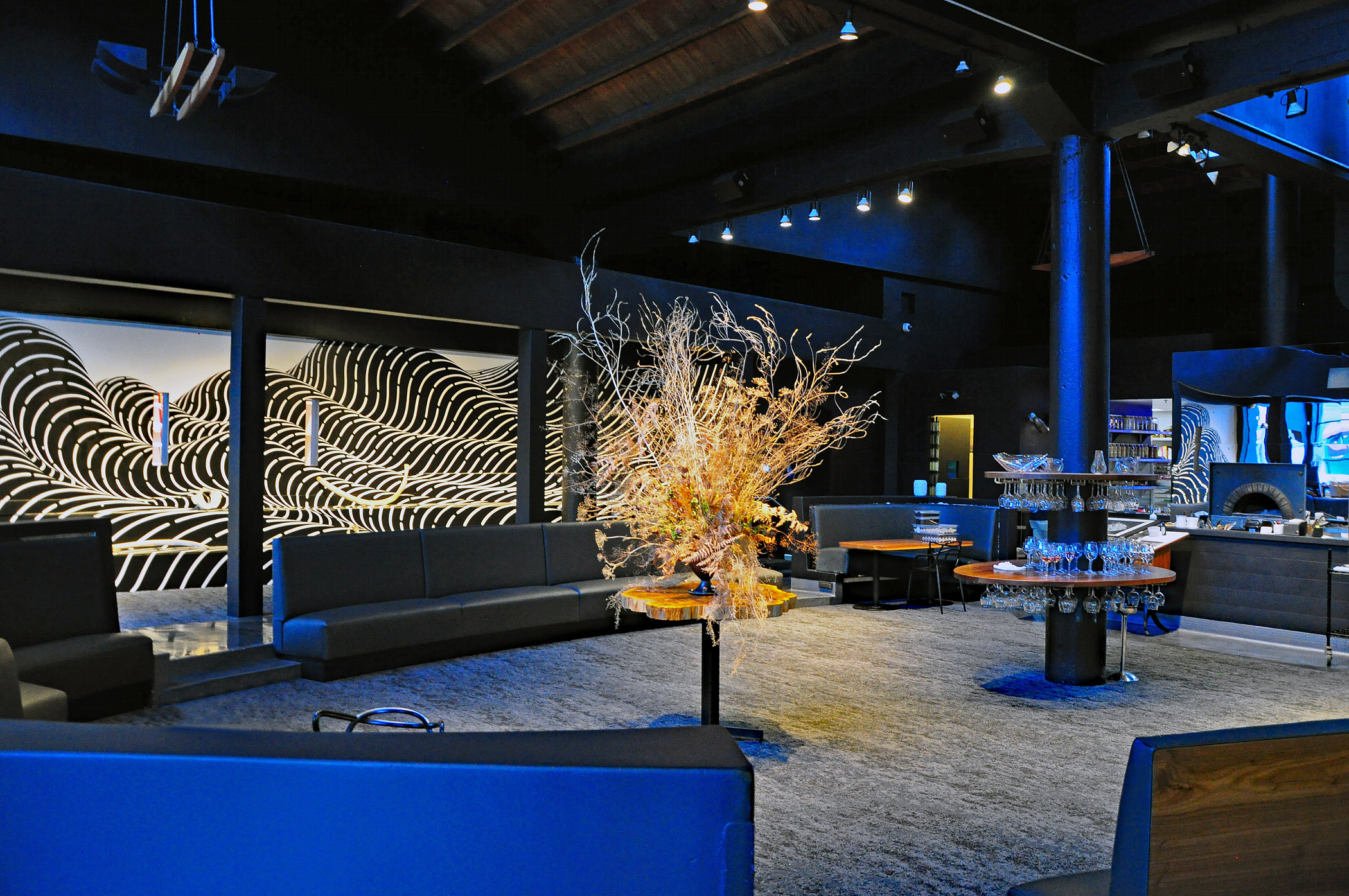 Custom-made blue water glasses and artful blue ceramic dishes create an atmosphere of art appreciation even before the food arrives. A mind-boggling list of fantastically creative cocktails is a separate artwork, worth some thoughtful contemplation (note an ice cube with an etched Palette logo on top).