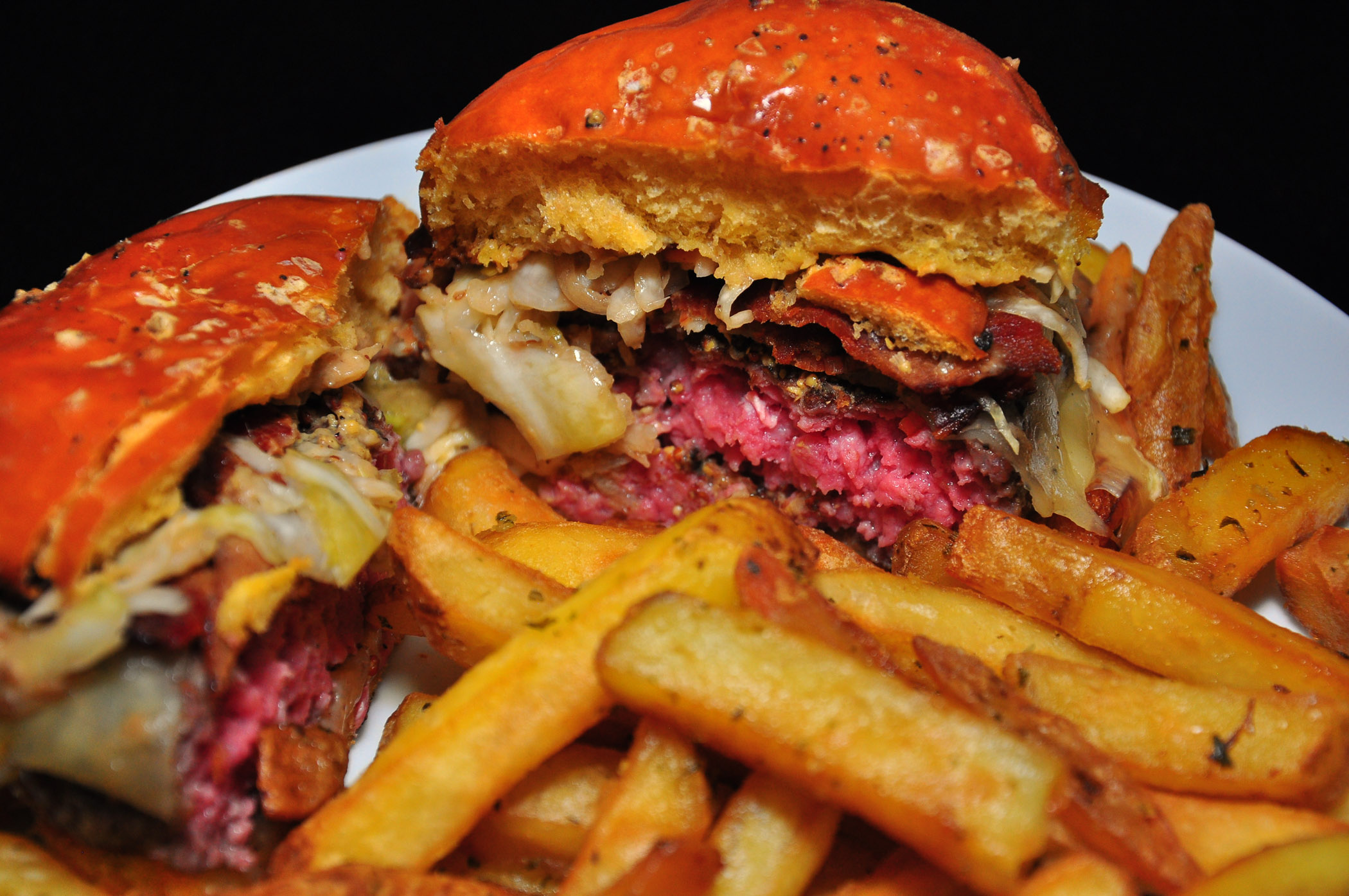 You have to choose every item in any combination you prefer, but a wonderfully meaty Applewood Smoked Bacon Steak Burger comes very nicely together with a Wedge Salad and an airy lemon tart for dessert, while a fragrant Black Truffle Stake Burger with a slice of brie makes fantastic pairing with a champignon-and–chips Truffle salad and a vanilla pudding for a sweet finale.