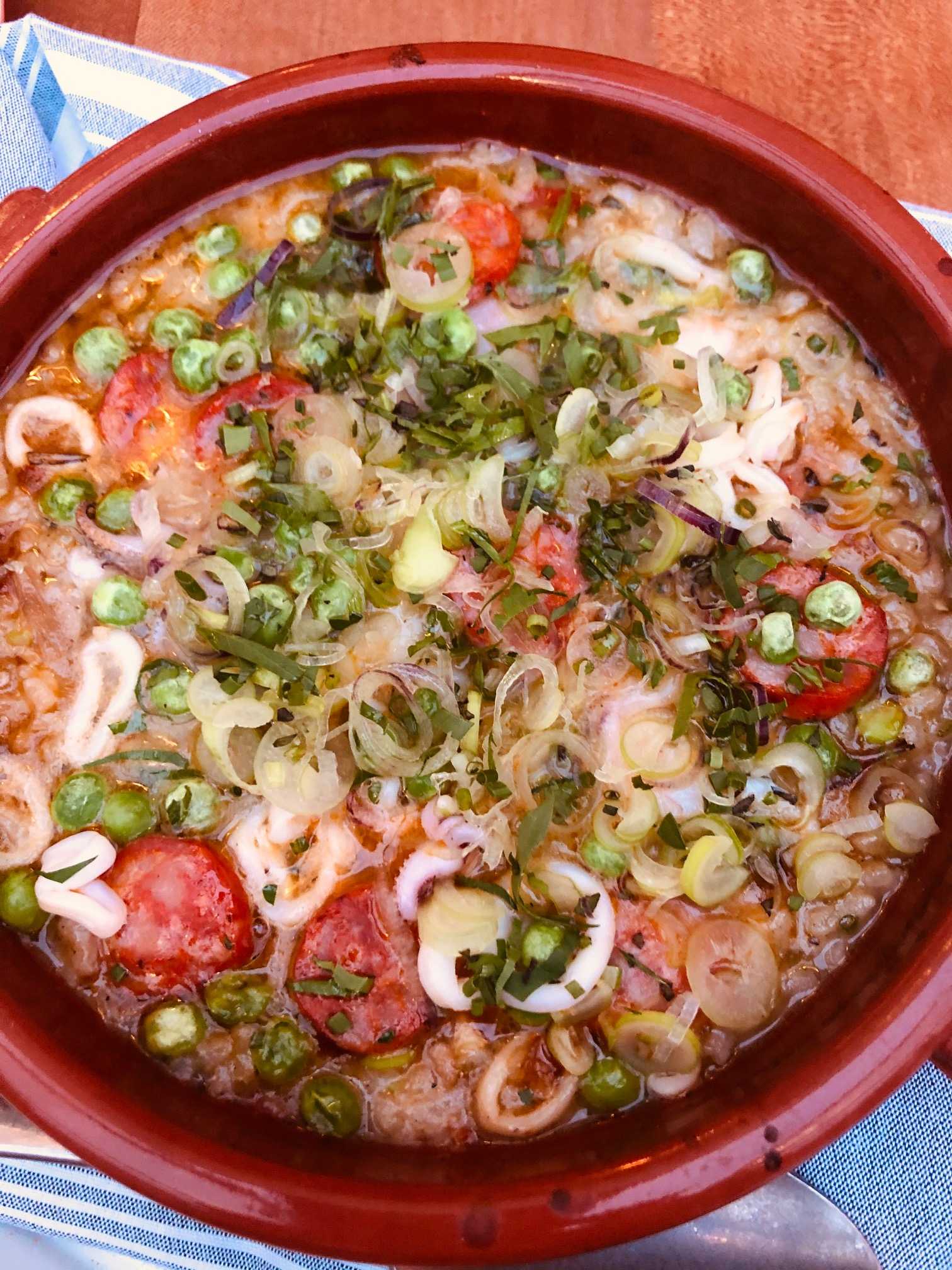 Other excellent menu choices include a delicate, yet bursting with flavor Chilled Octopus with Romesco, Spring Onion, Black Olive, and Potato, and a hot paella’s cousin, Brothy Rice with Squid, Shrimp, and Chorizo.
