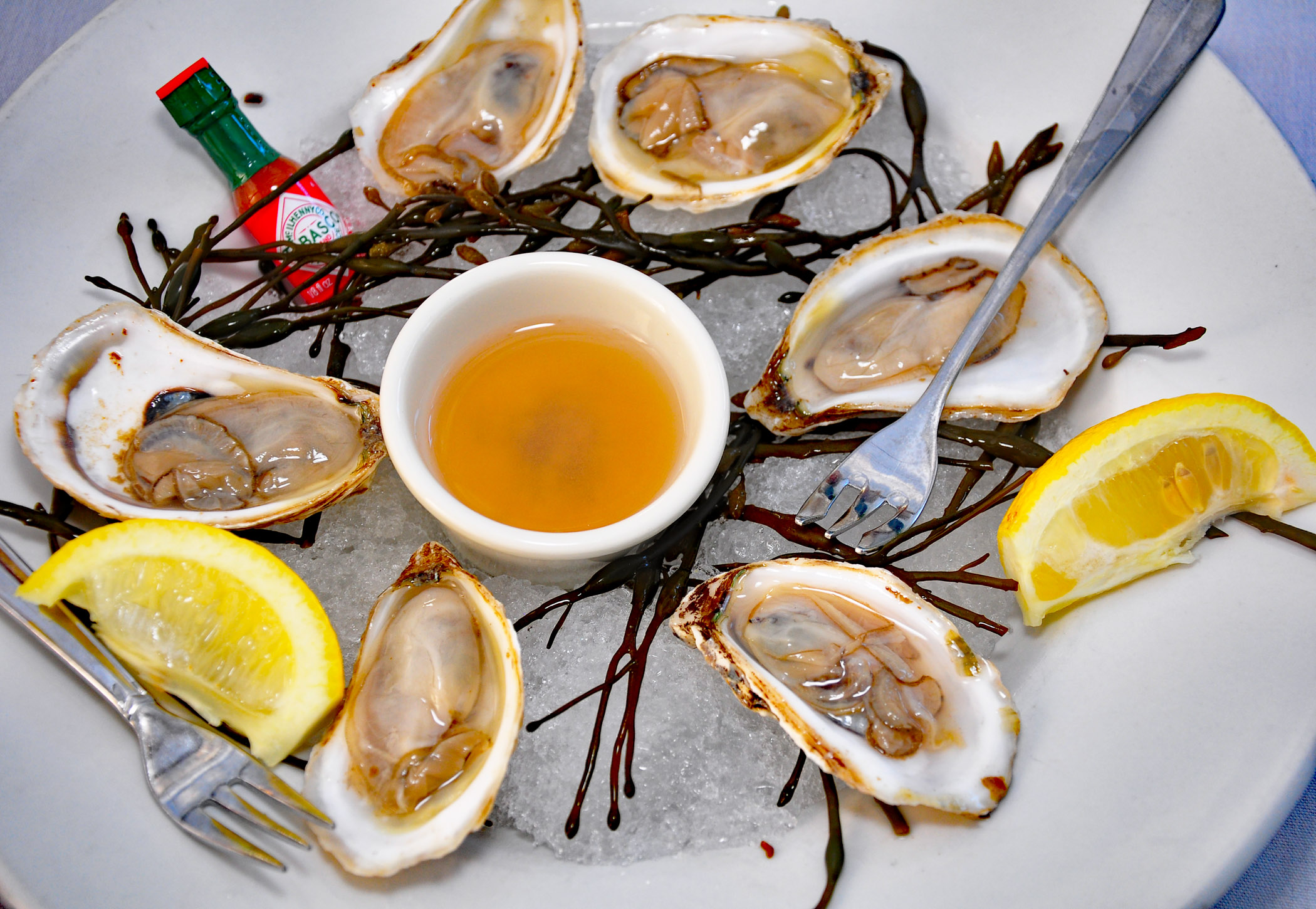Start with a Mendocino Mermaid specialty cocktail, made with white rum and guava puree, and tinted a fantastic purplish color with blueberry-lavender syrup.
