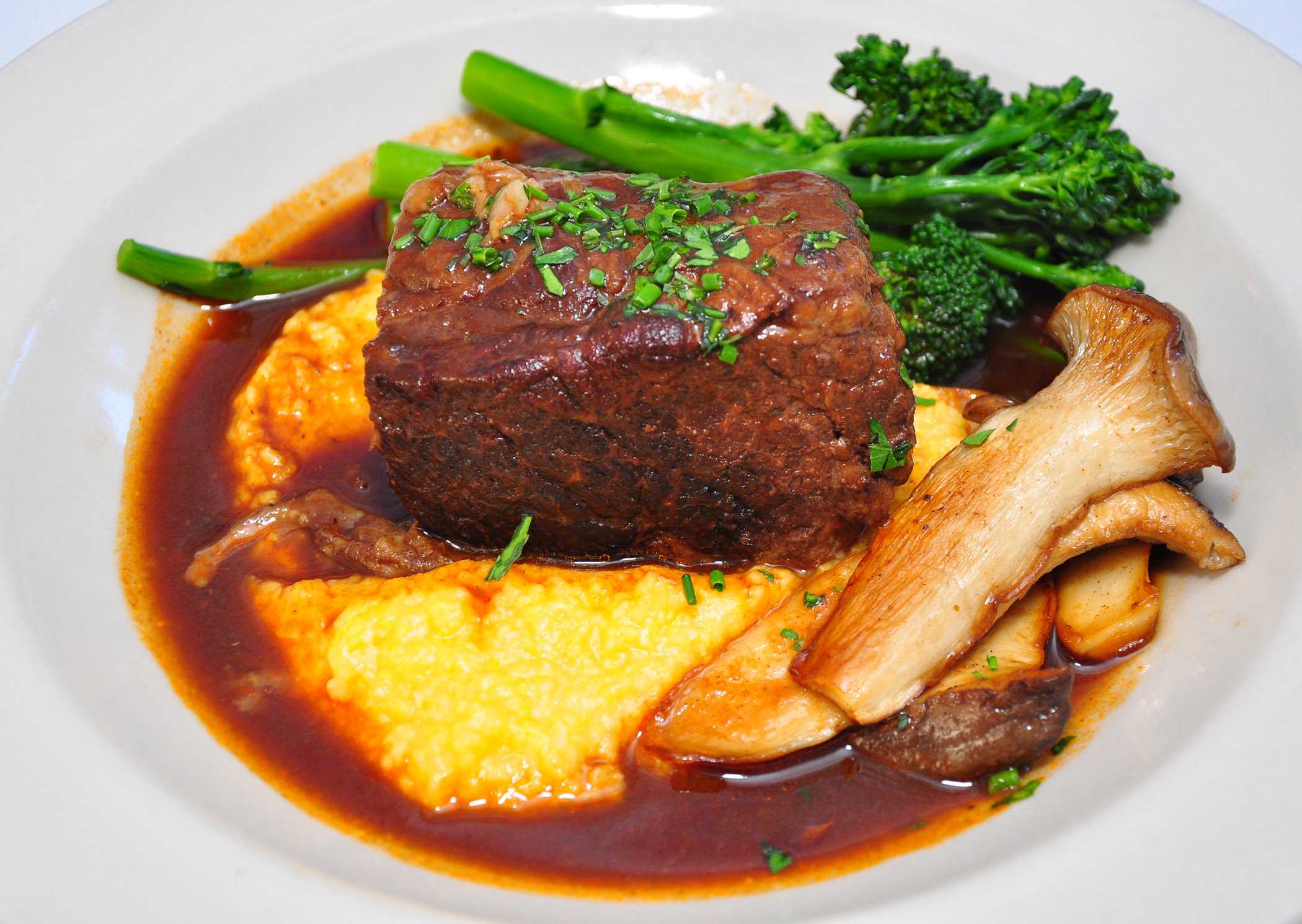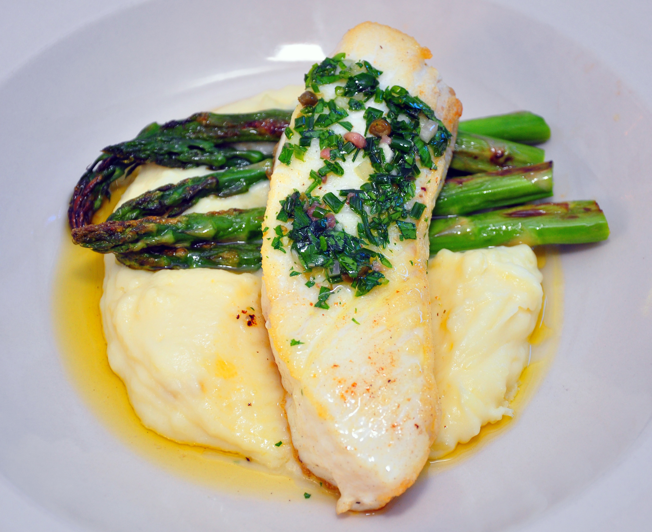 Among the Large Plates, Alaskan Halibut with asparagus and smashed potatoes, and Red Wine Braised Short Ribs with King Trumpet mushrooms, broccolini and creamy polenta are definite standouts.