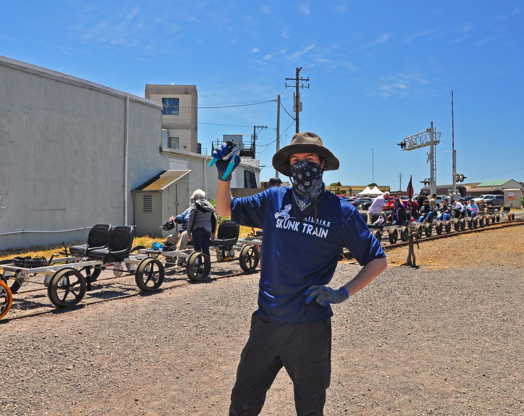 Railbikes are found at 100 W. Laurel St., Fort Bragg, CA 95437. Call 707-964-6371 or visit https://www.skunktrain.com/.