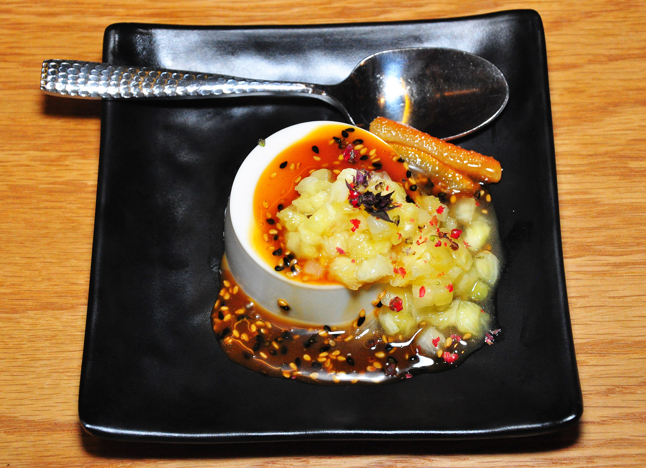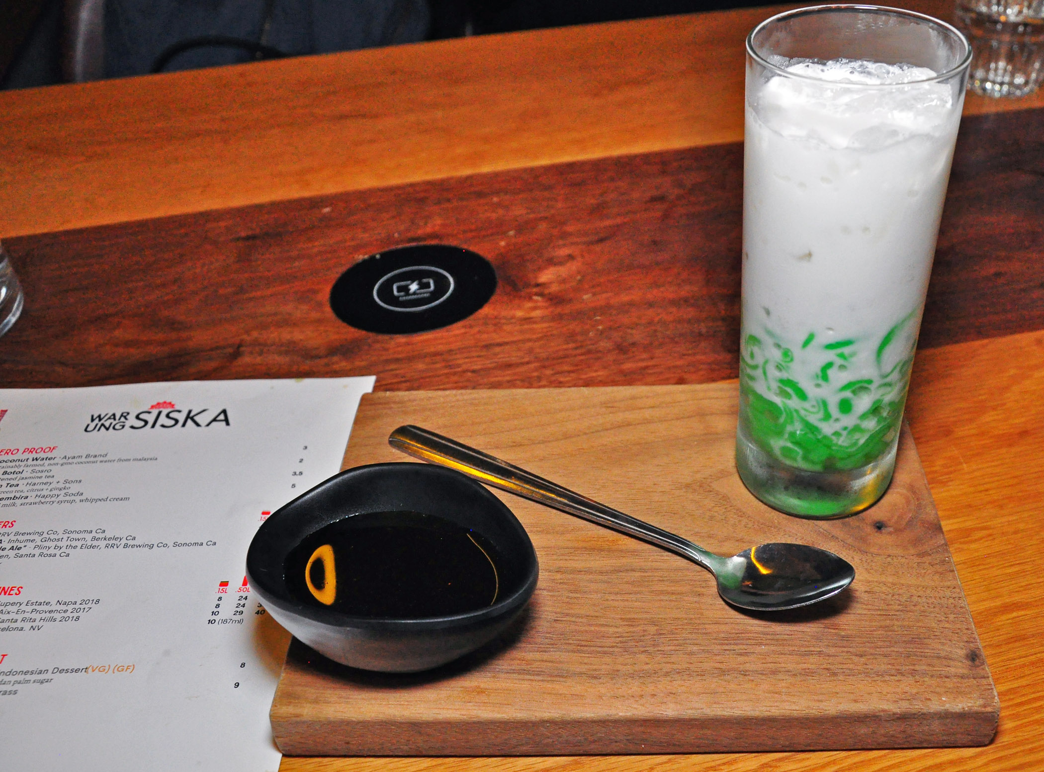 For libations, there are tap wines and California draft beers as well as non-alcoholic drinks—coconut water, teas, and a special Soda Gembira or “happy soda” made with condensed milk, strawberry syrup and whipped cream.