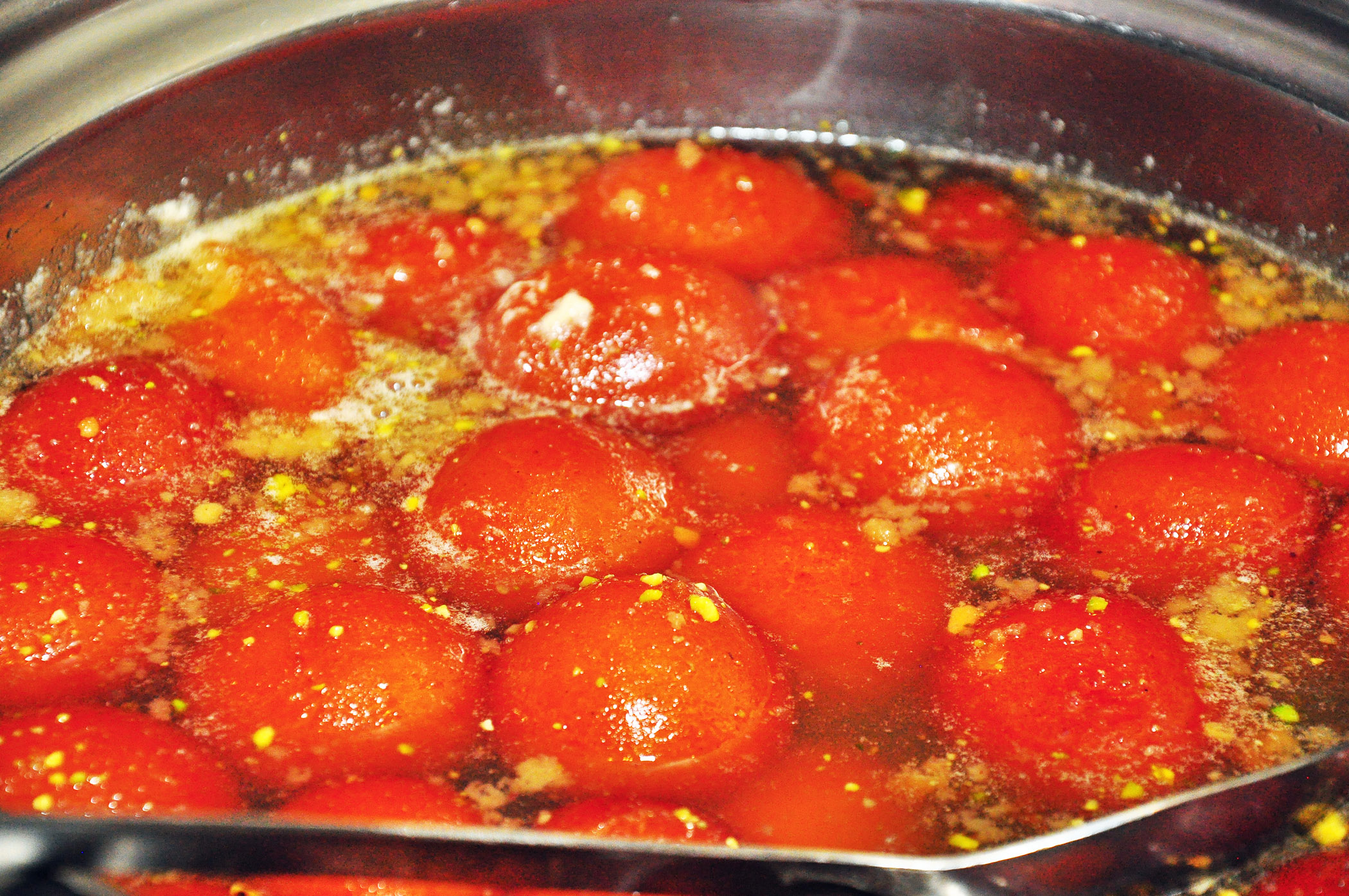 On the dessert table, there are traditional gulab jamuns, fried golden and dipped in saffron syrup as well as the Western sweets of cheese cakes and brownies.