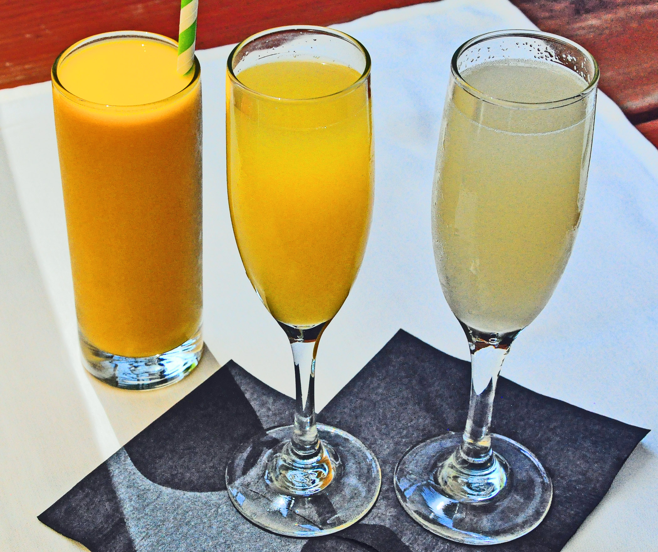 The food is supplemented with bottomless mimosas. Besides the traditional orange, there’s also pineapple, lychee, watermelon, and mango bubbly to meet any demand and satisfy any craving.