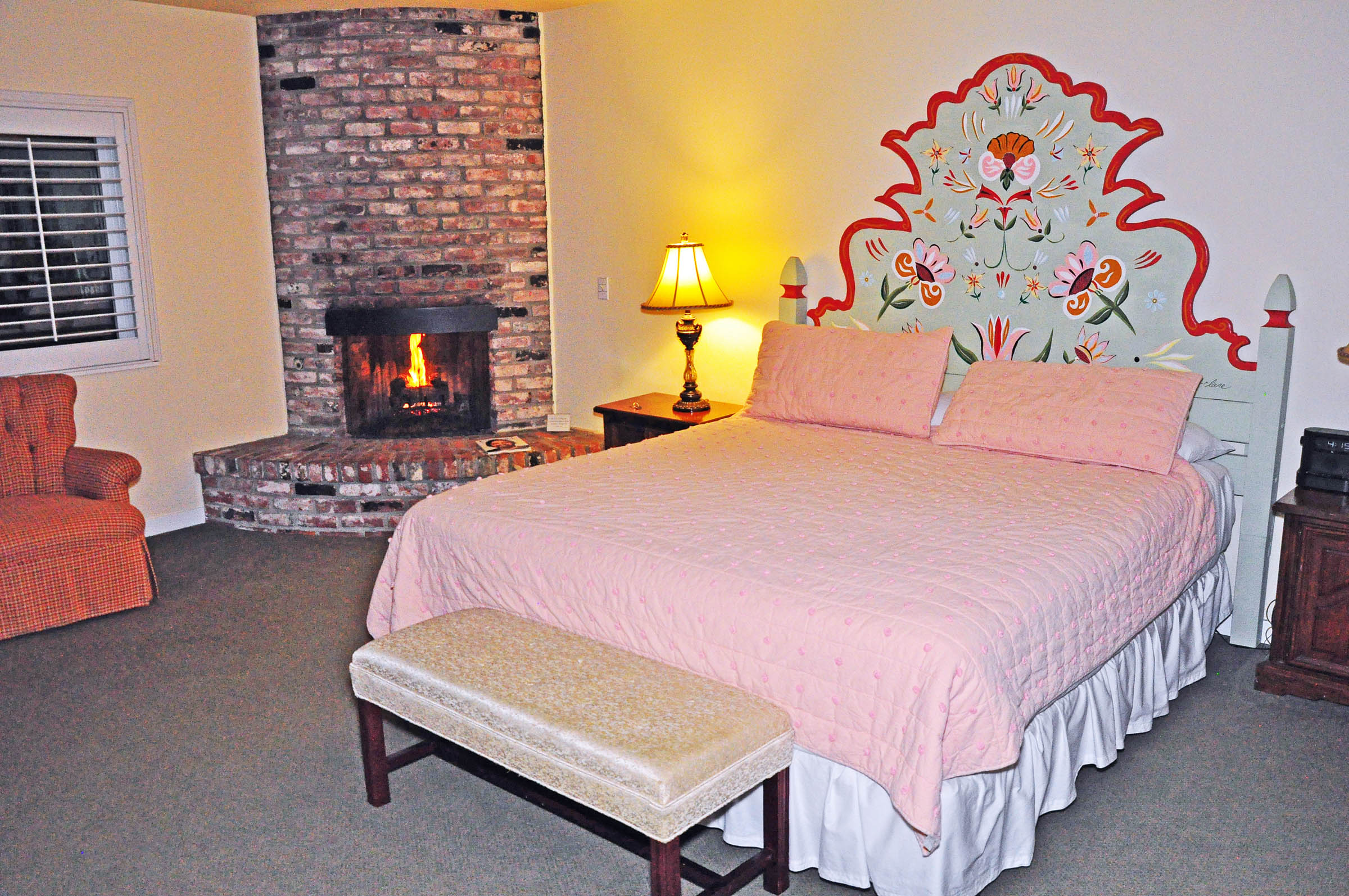 All rooms have some elements of style that make this place unique, and uniquely desirable, like Dutch doors, wooden Plantation shutters, old-fashioned bedside lamp shades, and period furniture pieces. Not to mention the luxurious beds with painted headboards, pastel-colored covers, and snow white linens.