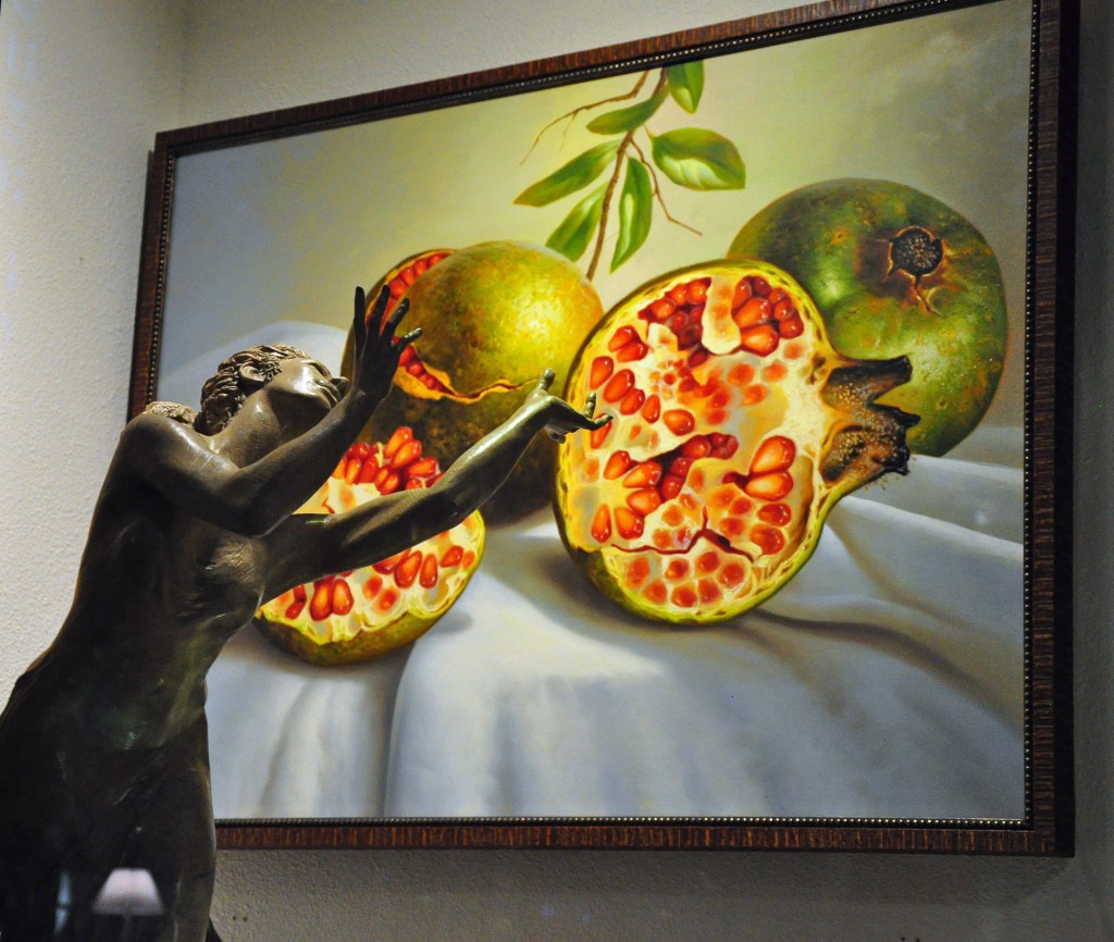 Another great piece in the Inn’s Riverbend Plaza, is the Mosaic Fountain by Alan Shepp. The massive three-tier installation of vitreous-glass mosaic depicts Napa Valley’s agricultural might, its human and animal inhabitants, its viticultural bounty, and its river world, populated by the iconic California species.