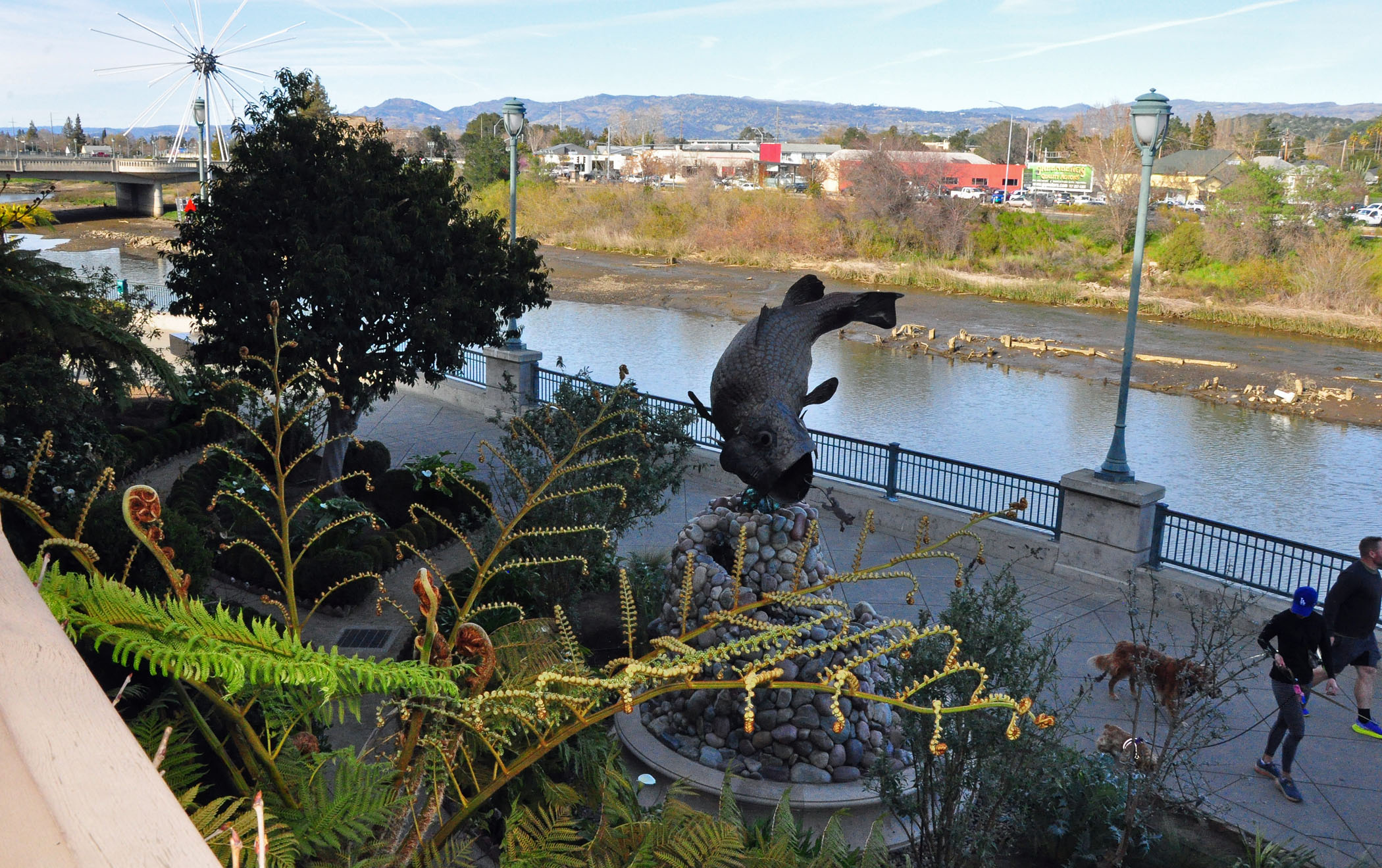 “Fish On,” visible from the hotel rooms, was created by Terrance Martin. According to the Inn staff, the sculpture was supposed to be temporarily displayed in the city, and then returned to the artist. However, Harry Price, a City of Napa benefactor and real estate developer behind the Historic Napa Mill and Napa River promenade, acquired the sculpture from the artist and installed it permanently on the hotel grounds.