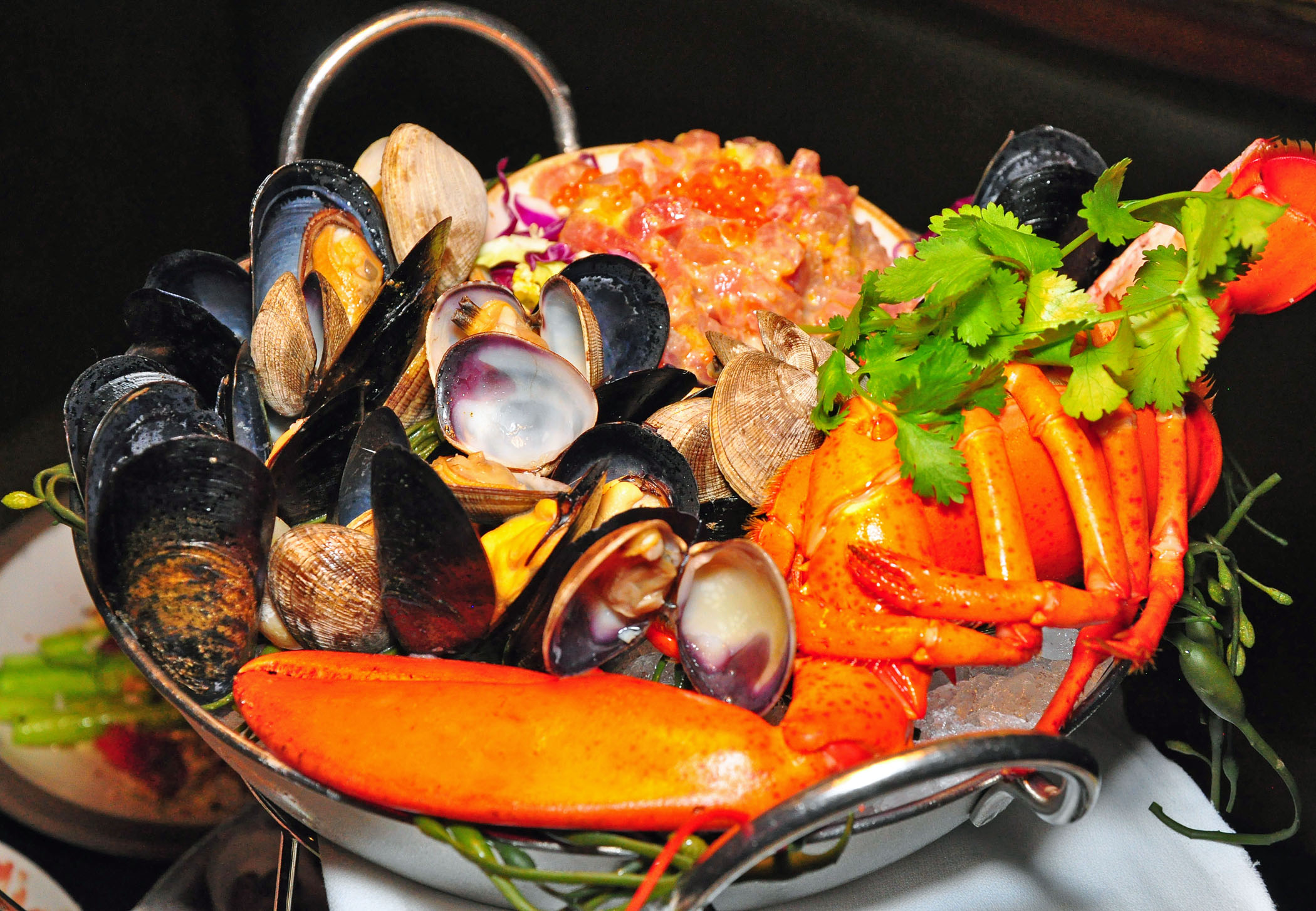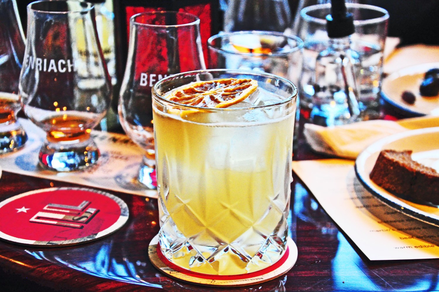 In addition to the pure whisky tasting, Laszlo bartenders created Friends of Benriach cocktails—Penicillin (10-year single malt, honey ginger syrup, lemon juice) and Smoke and Whisper (10-year single malt, limoncello, fresh lemon, ginger, honey). The kitchen provided an array of sophisticated food-pairing dishes, like warm mixed olives, homemade bread with butter, lavender-scented goat cheese, antipasti and seafood platters, arugula salad with cherry tomatoes, and beef carpaccio.