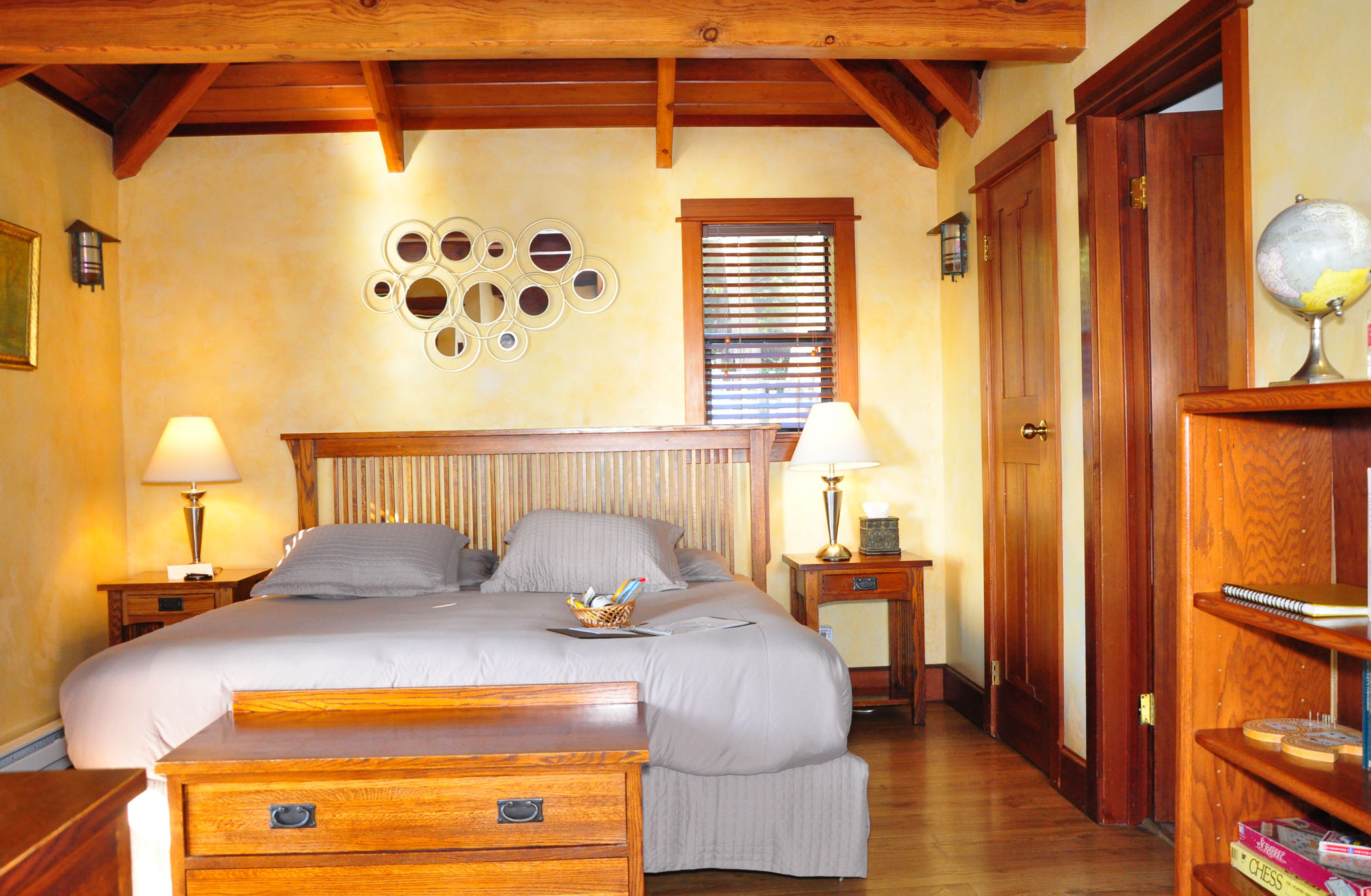 These curious tidbits of local history and its prominent characters are reflected in Elk Cove Inn’s room names. L.E. White Room on the second floor looks directly at the ocean beach, a trail leading to it, and a private staircase from which you can head to the ocean if you turn left, or to the Elk village if you turn right.
