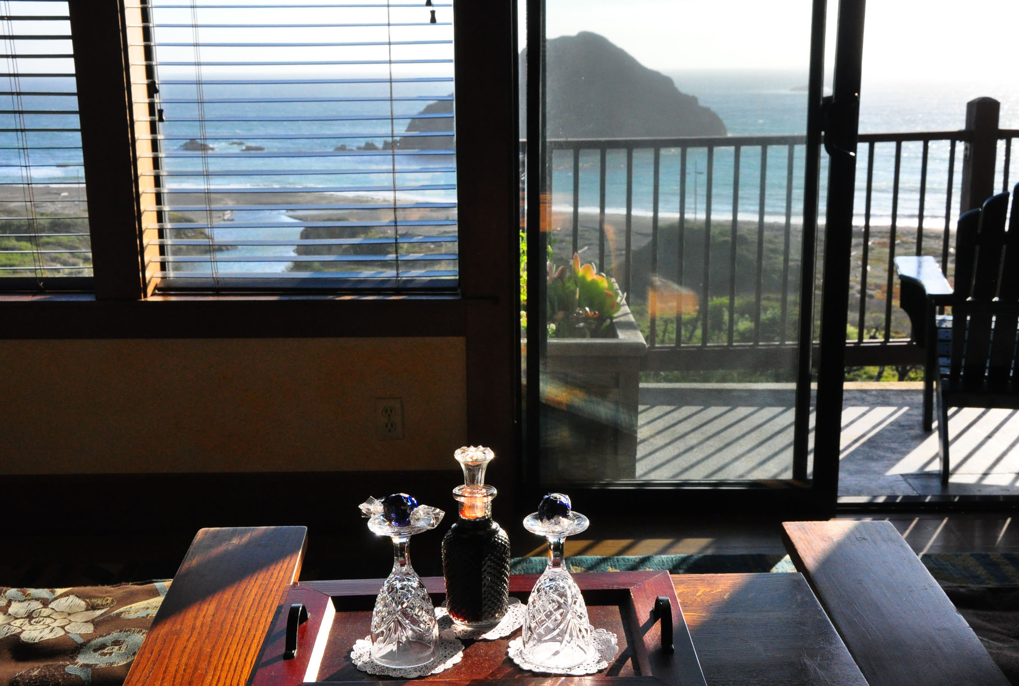 After a walk in tiny Elk, or along the beach, where strewn around whimsical driftwood resembles sculpted pieces of art, created by Mother Nature, it feels wonderful to return to the warm coziness of your room at the Inn, with soft lighting, comfortable furnishings, a fireplace, a Jacuzzi, a couple of beautiful heavy bathrobes, a bookshelf with whodunits and board games, and even a welcome set of aged port in a crystal decanter and a couple of Lindt chocolates to make it all as sweet for you as can possibly be.