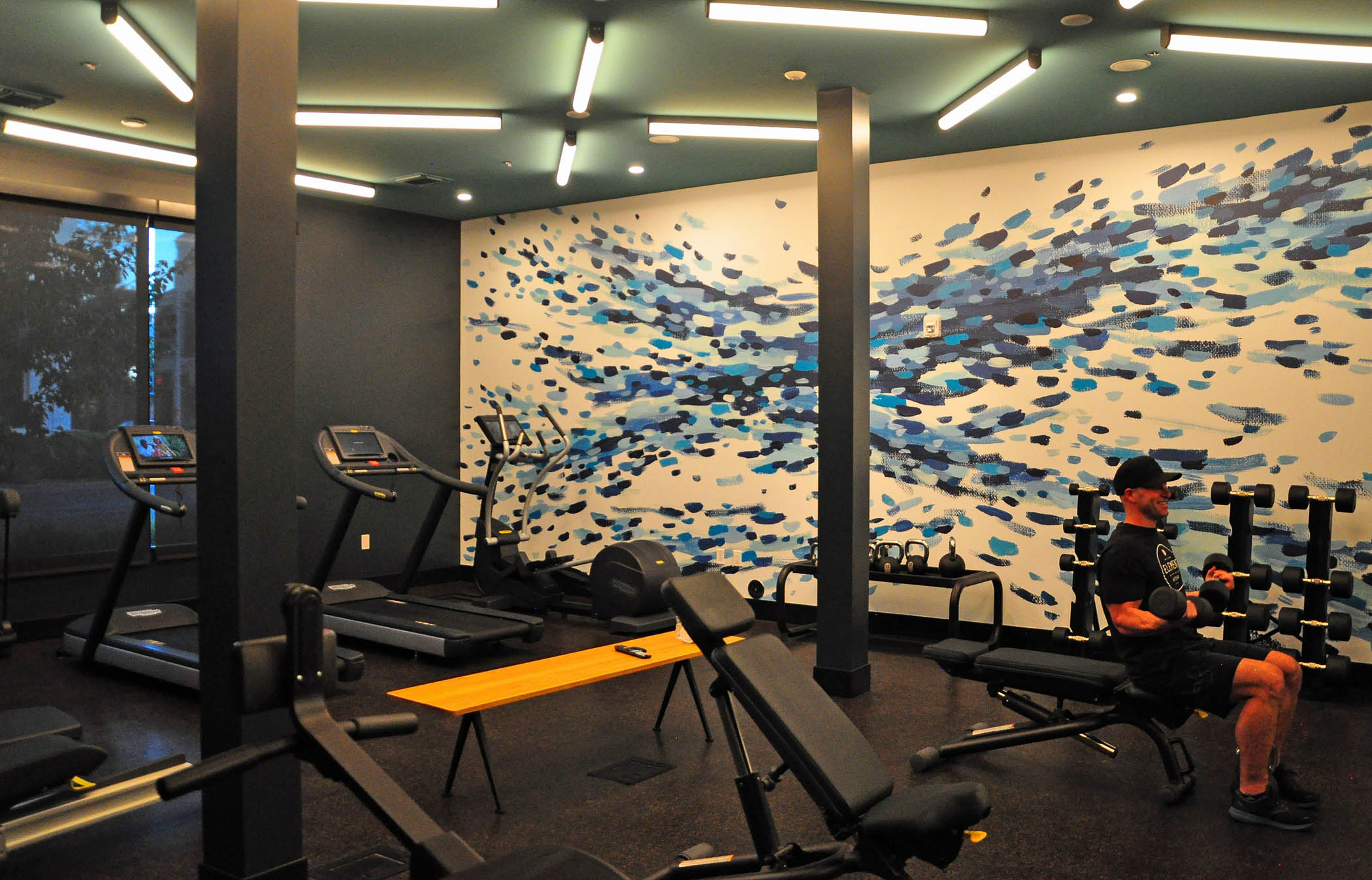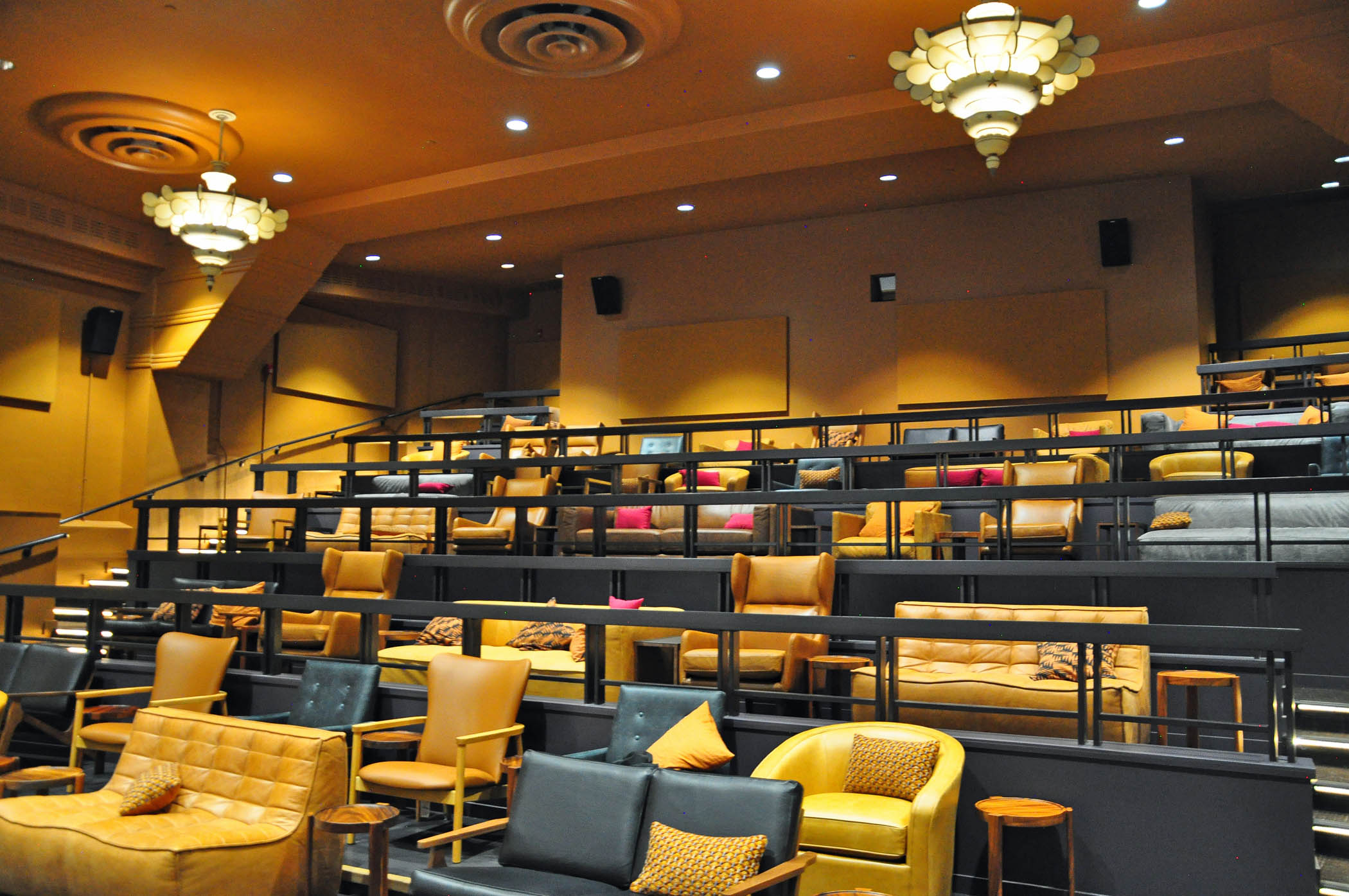 A historic music and entertainment center, Mainzer, steps away from the Hotel lobby, is a place for all tastes and preferences. There’s live music on the Main Stage, along with generously portioned bar food, craft cocktails and other libations; film screenings at the audience theater, or in a reserved for private events posh projection room, furnished with armchairs, sofas, and throw pillows; a cute 50s-style diner in a mint-green, black and white color scheme; a self-serve brew bar with regional artisanal tap beer from multiple dispensers, and a retro game room for children and adults. There’s also quite a remarkable collection of contemporary art, mostly from the local artists, that adorns the walls of Mainzer as well as every single facility inside the Hotel.