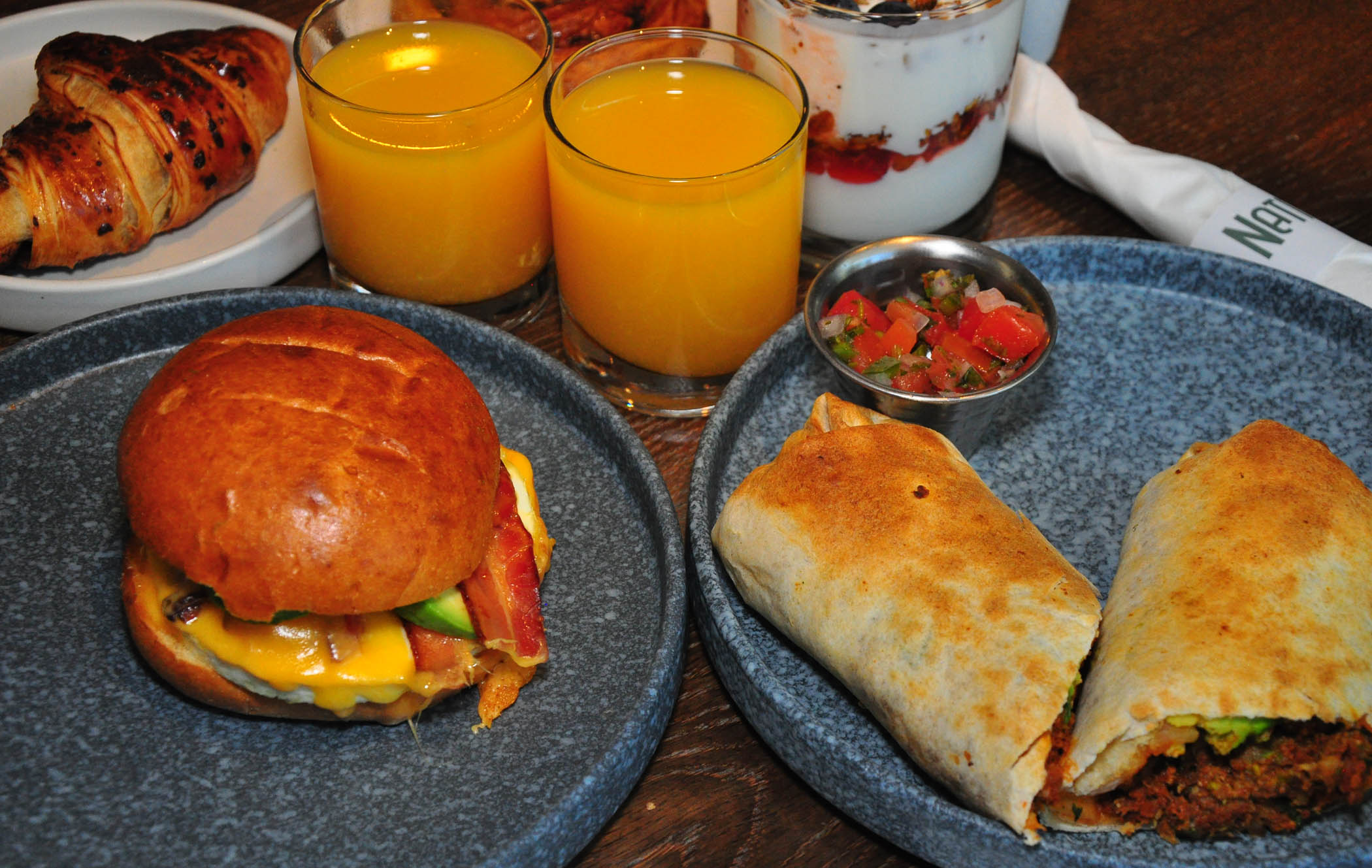 Native Son is especially popular for breakfast (think avocado toast, breakfast burrito, lox bagel, fresh-squeezed orange juice, an array of croissants and other pastries, plus all kinds of coffee drinks). An added appeal of this place lies in its outdoor seating, where people can bring their four-legged friends, and do it rather enthusiastically. At the entrance of the restaurant, inside the hotel lobby, there’s always a water bowl for dogs, and a little blackboard with a proper greeting to the guests’ pets, like “Welcome, Mango, Jasper, and Lola!”