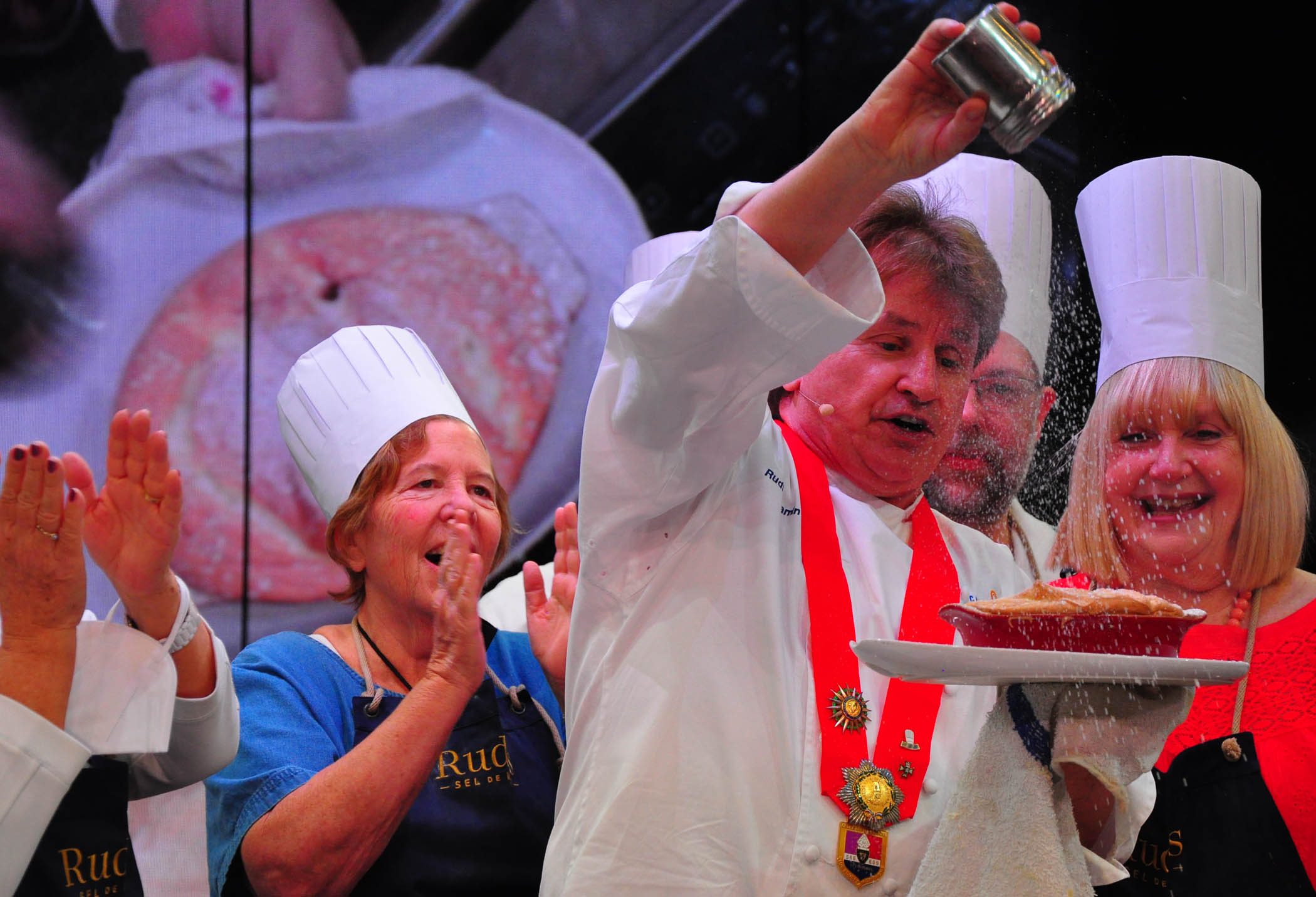 He encouraged his helpers with lots of cheers, and concluded with, “Let’s put it in the oven, and pray!” to the audience’s delight.
